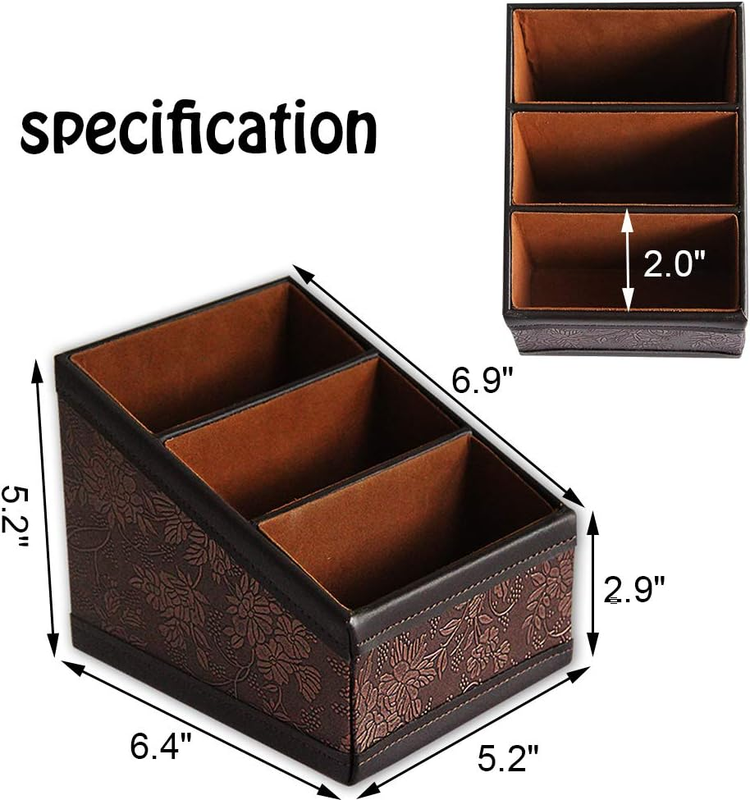 PU Leather Remote Control Holder Storage Container for TV Remote Phone Caddy Eyeglasses