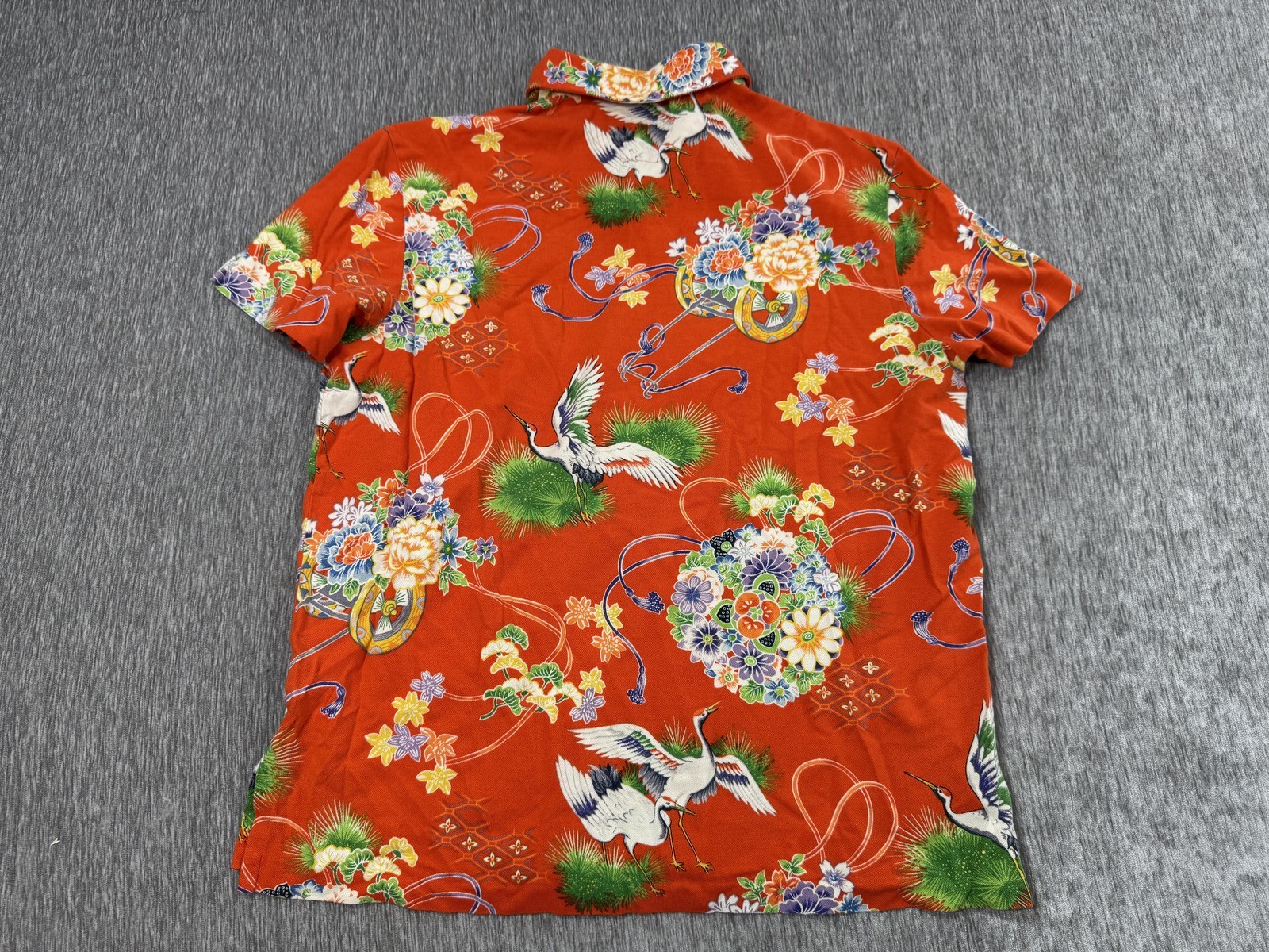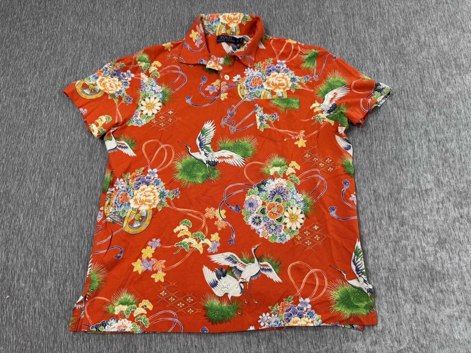 Polo Ralph Lauren Polo Shirt Mens Large Orange Floral Crane Print Aloha Resort