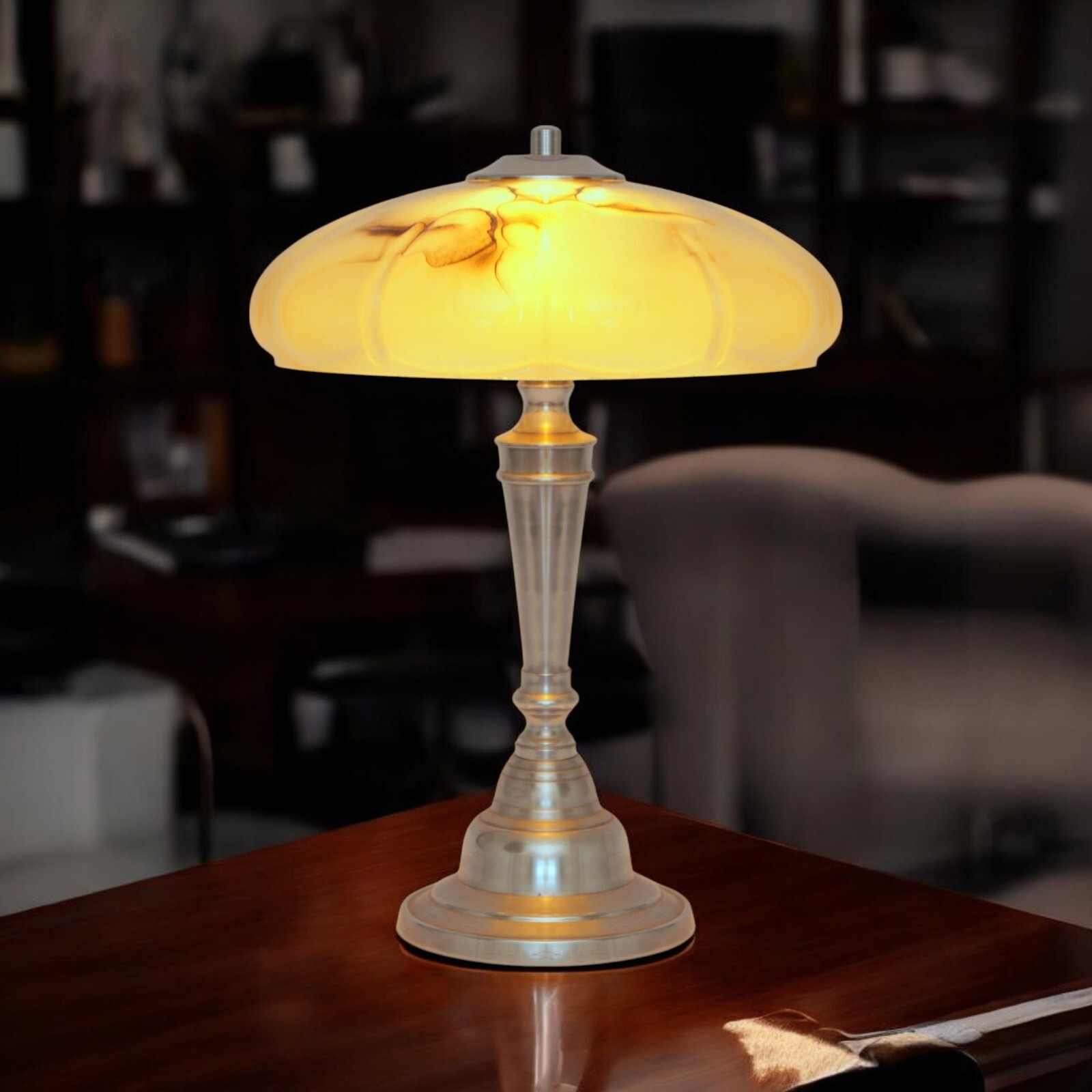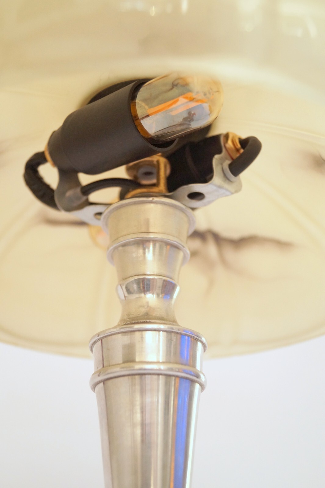Antique original opal glass, approx. 1920s, cream white, marbled, great lighting effect.