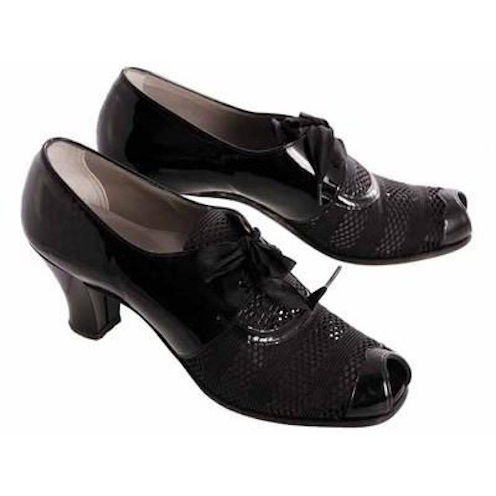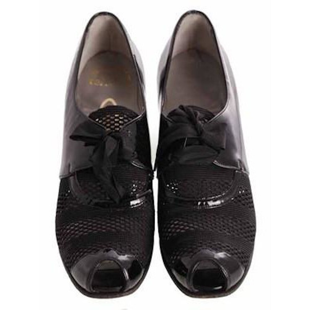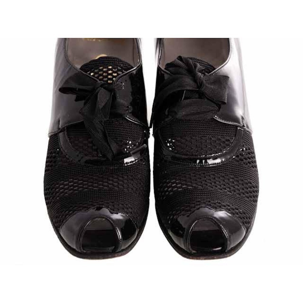Vintage Womens Shoes Oxfords 1930s Black Patent/Mesh/Peeptoe Sz 7 Dickerson