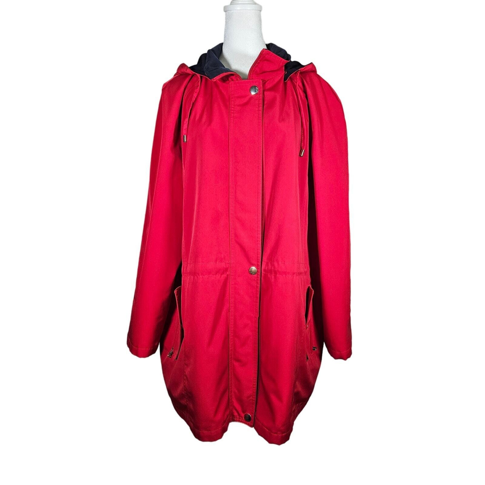 Nautica Men's Hooded Raincoat Jacket Red Pockets Detachable Hood Size XL