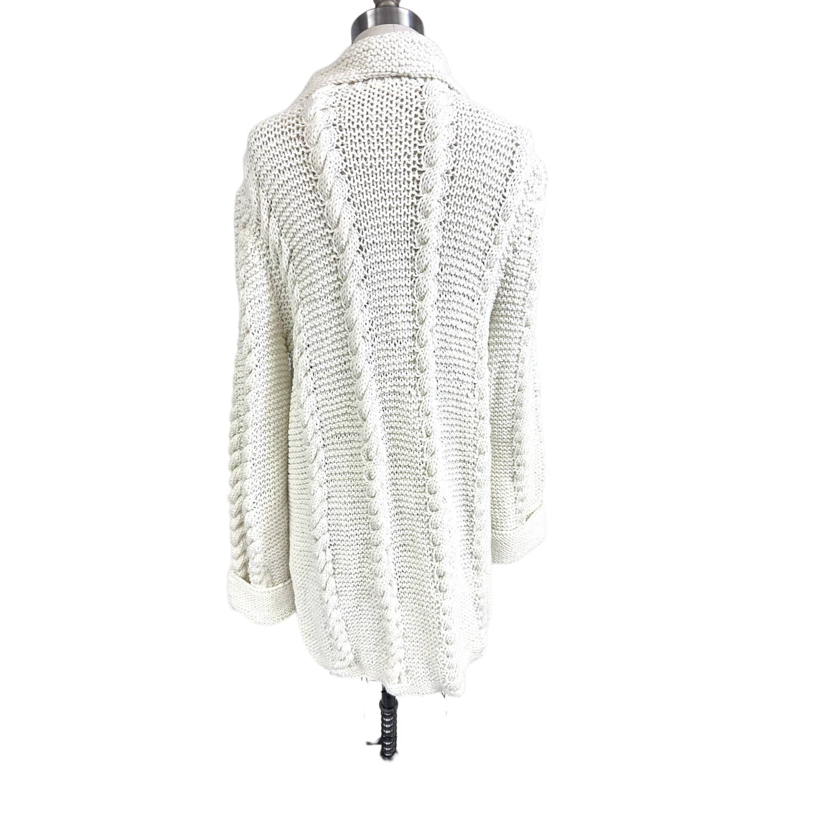 Vintage 70s Hand Knit Cardigan Coatigan Acrylic Cable Knit Sweater L XL Retro