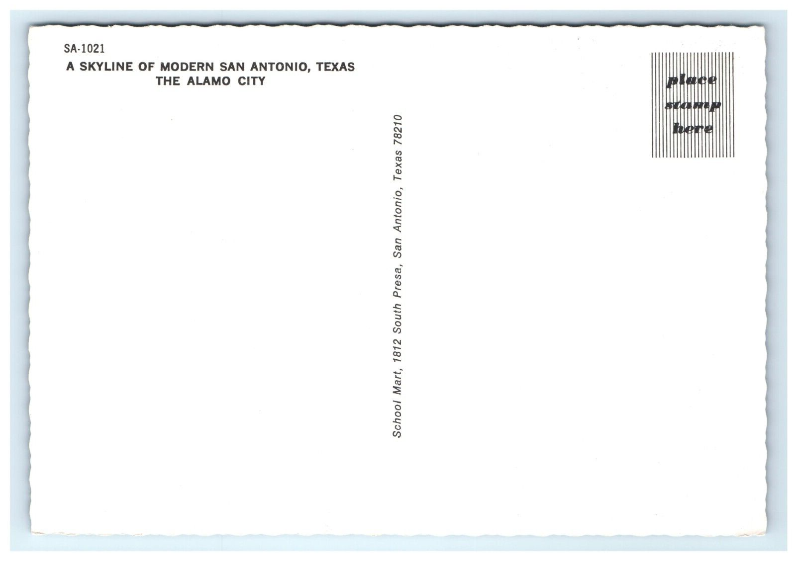 Vintage Divided Back Postcard Depicting the Skyline of Modern San Antonio Texas Alamo City.