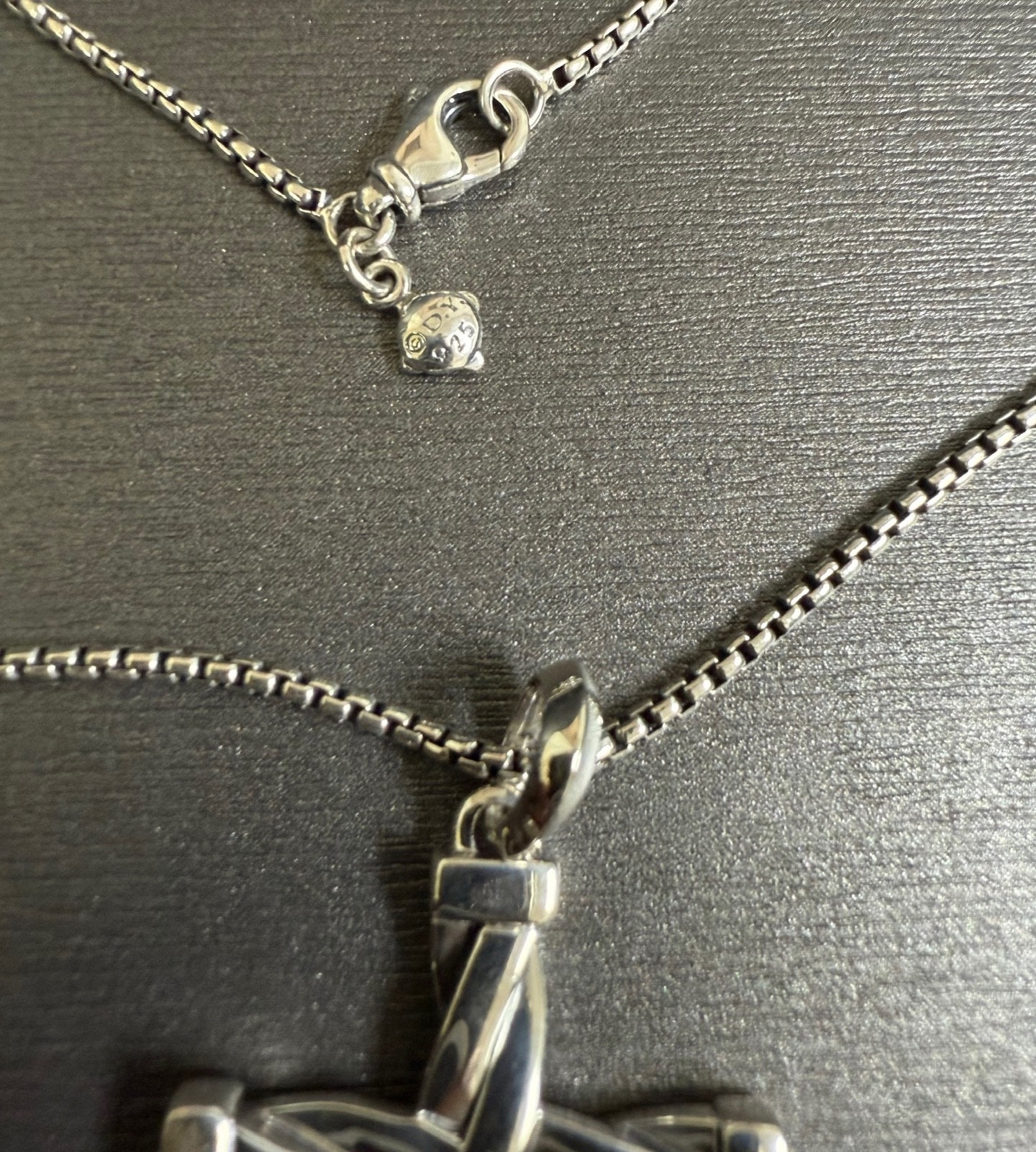 David Yurman 925 Sterling Silver Men's Helios Cross Pendant With Chain 24"inch