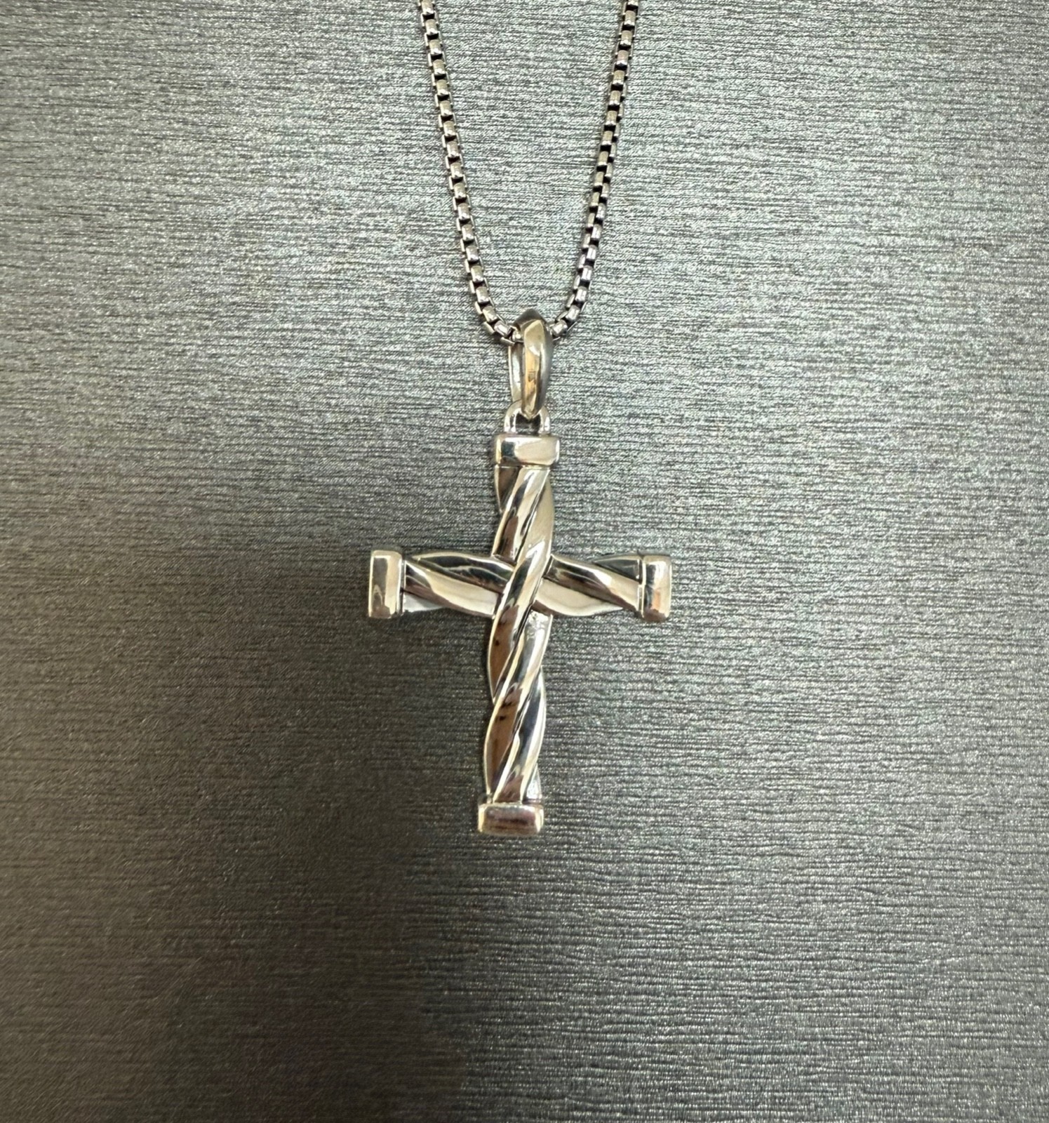 David Yurman 925 Sterling Silver Men's Helios Cross Pendant With Chain 24"inch added to cart.