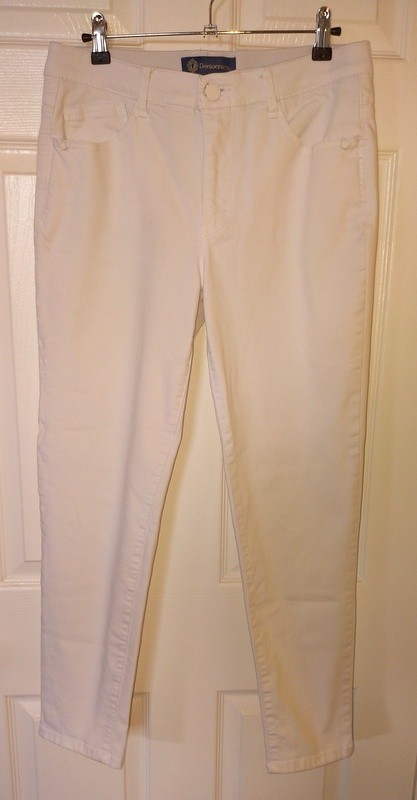 Women's DEMOCRACY "Ab" solution White Stretch Cotton Tapered Leg Ankle Jeans (8). The measurements are: