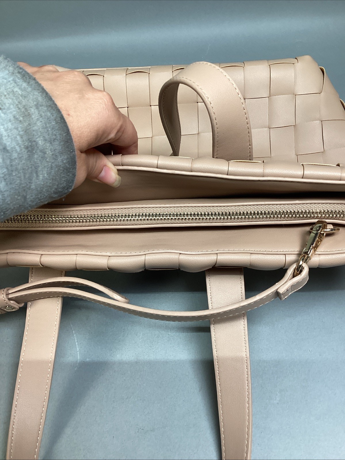 Like Dreams Woven Waffle Weave Shoulder Bag Purse. In very good condition. It has an adjustable strap and handles. The bag measures 17x9.5?. Made of faux leather.