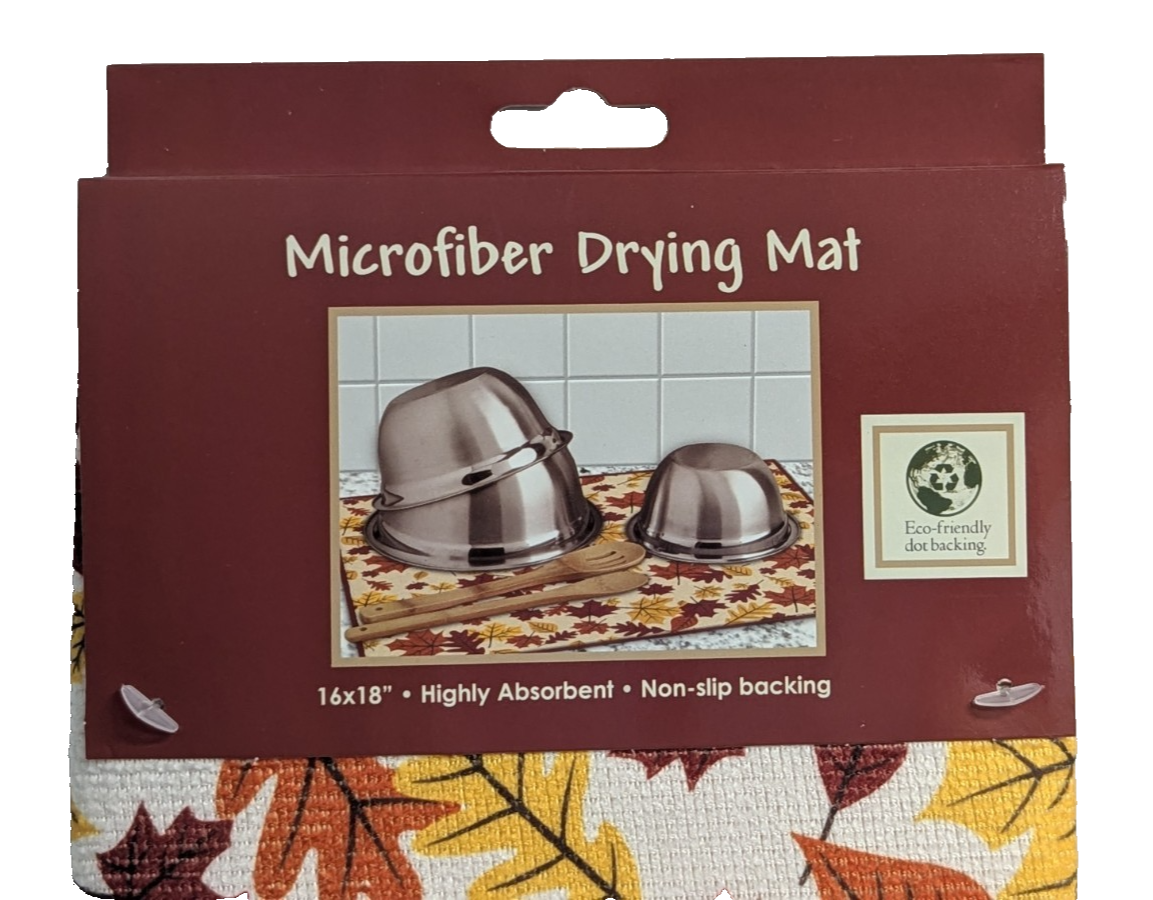 Fall Leaves Microfiber Dish Drying Matt 16 X 28-Inch Echo Friendly Dot Backing