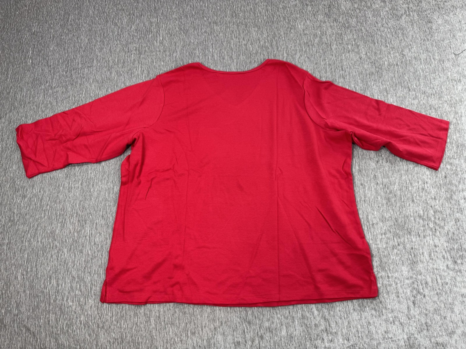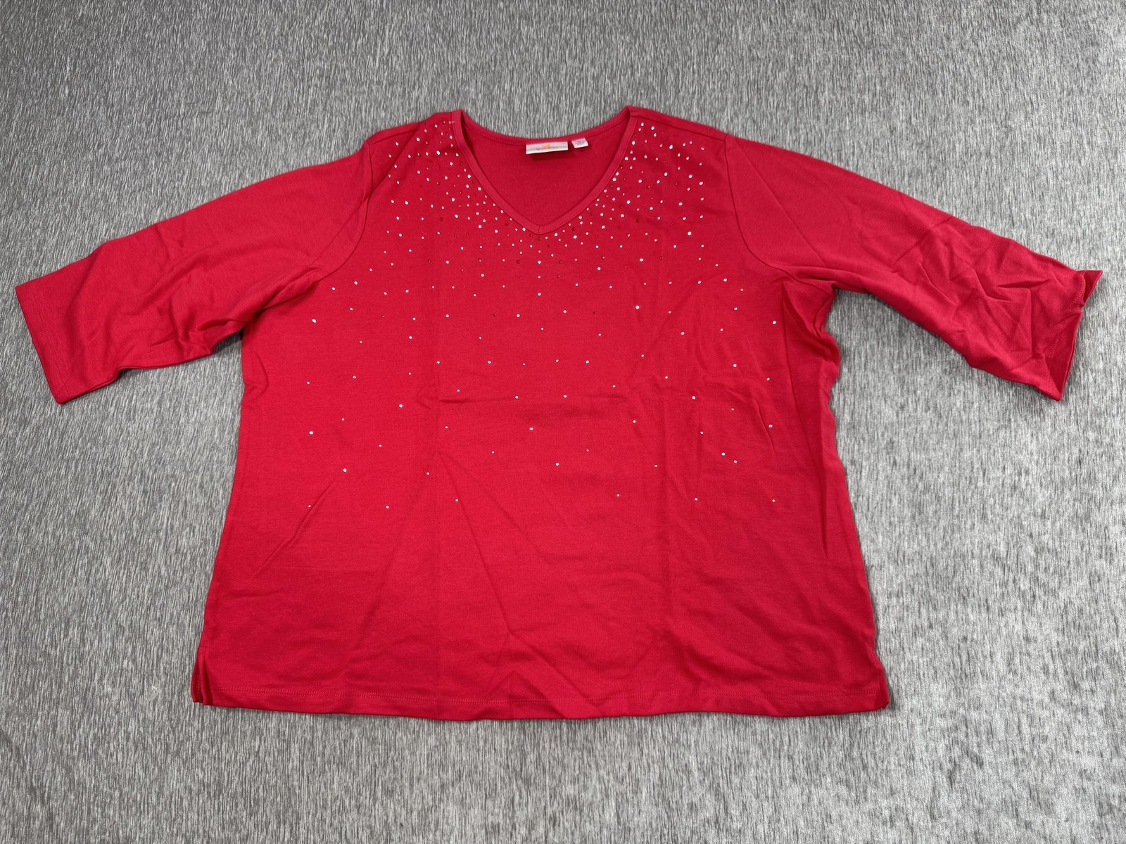 Quacker Factory Shirt Womens 3X Red Rhinestone Embellished V Neck 3/4 Sleeve