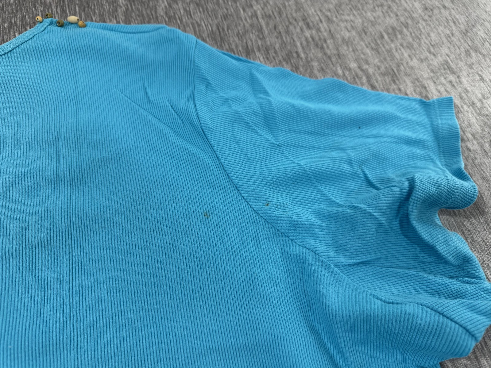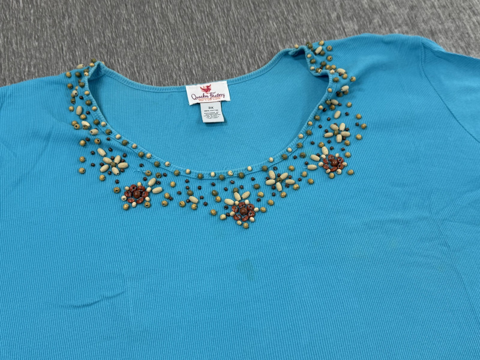 Quacker Factory Shirt Womens 3X Blue Beaded Embellished Scoop Neck Plus Size