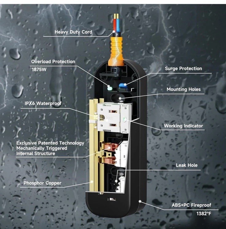 Outdoor Extension Cord Waterproof, Heavy Duty Extension Cord Power Strip Waterpr