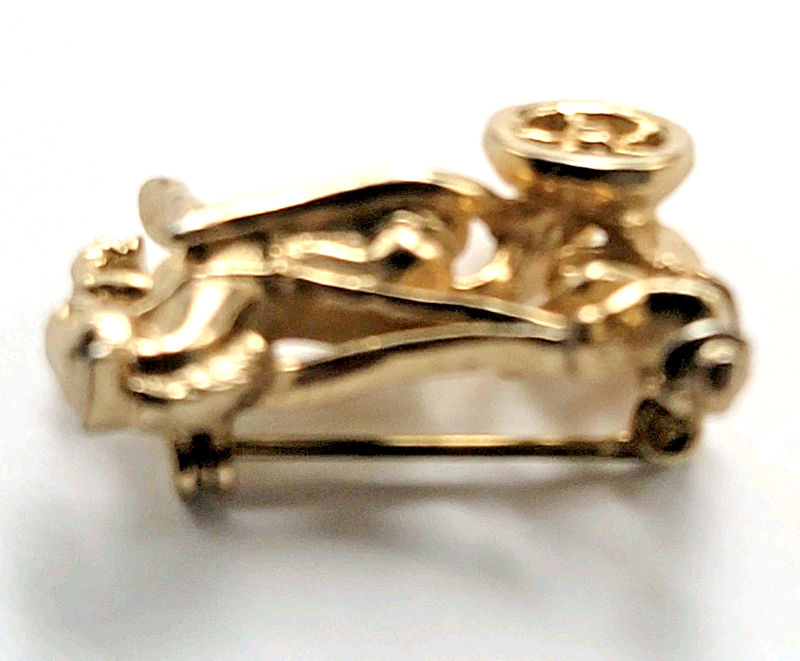 Horse and Carriage Gold Tone Pin Brooch