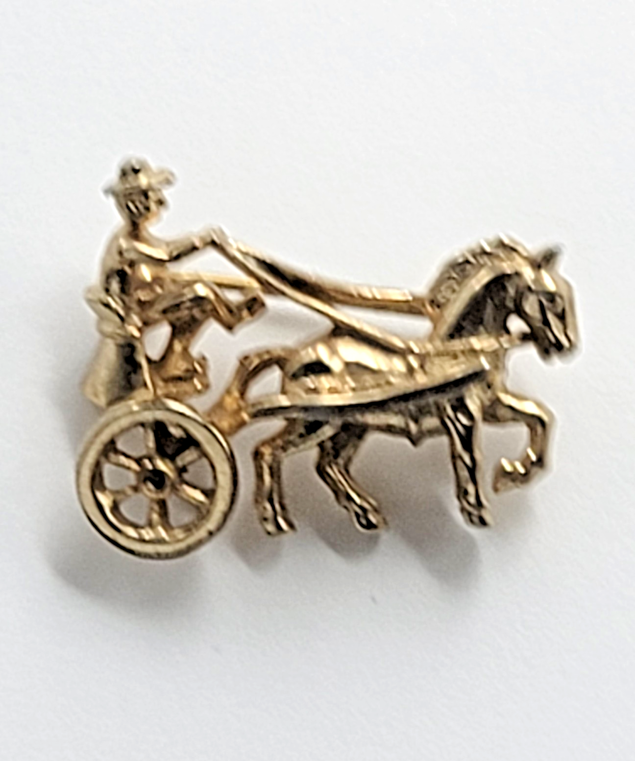 Horse and Carriage Gold Tone Pin Vintage Equestrian Driver Buggy Brooch Jewelry