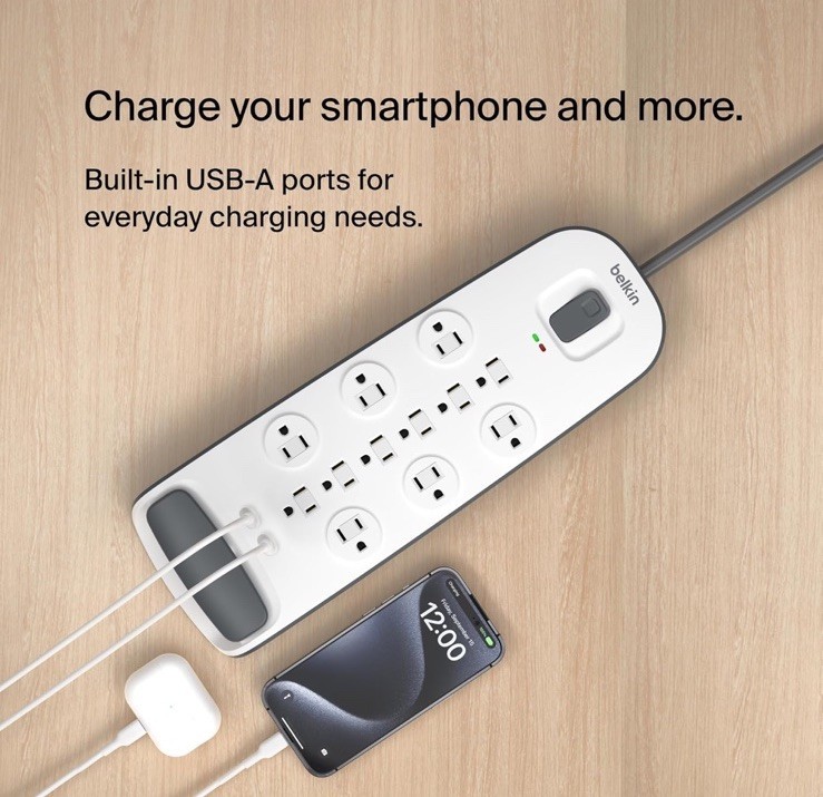 Belkin 12-Outlet Surge Protector Power Strip, 2 USB Ports, 6ft Cord, 3996 Joules