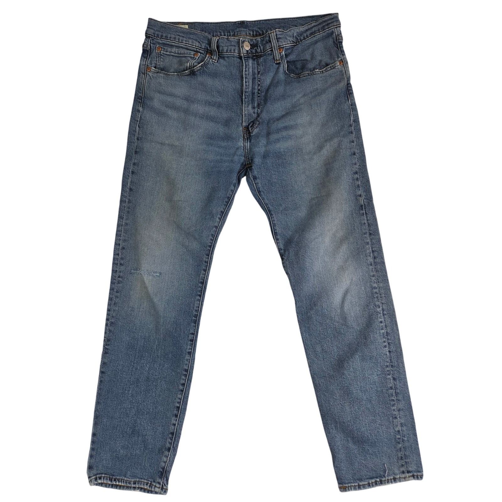 Levi’s 502 Slim Taper Jeans — Distressed Knee, Mid Wash Denim 34x31