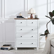 White 5-Drawer Tall Dresser, Wood Storage Chest for Bedroom