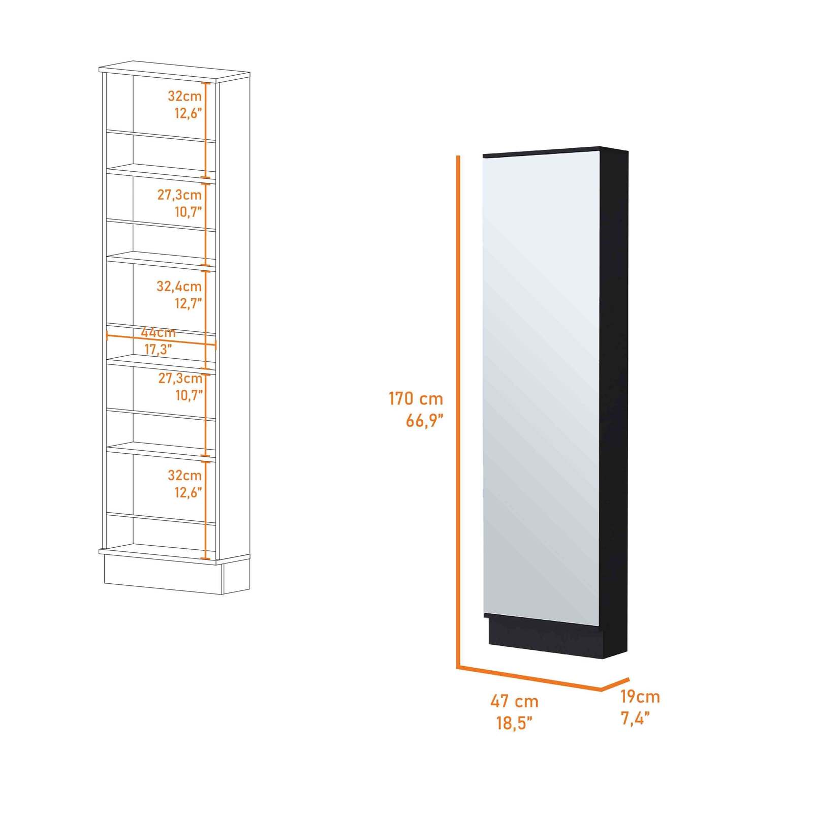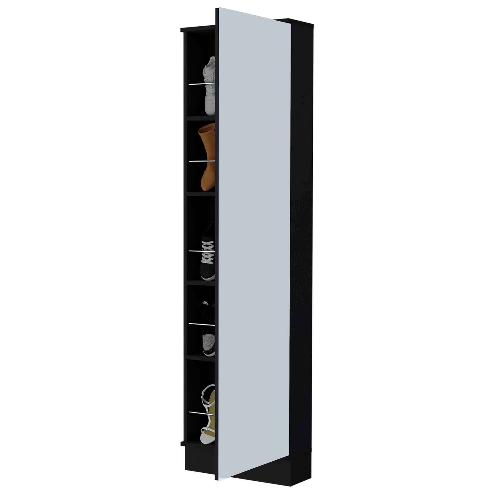 Ruan XL Shoe Rack with Mirror, 5 Shelves, Single Door Storage Cabinet