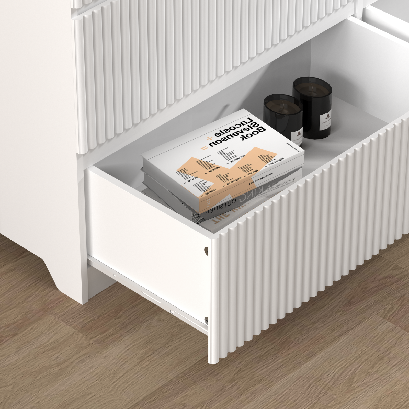 STYLISH DRESSER FOR HOME: Created with clean lines and Wavy drawer panel design, this chest of drawer can easily fit in any decorative style. Unique handless design and elegant base create a contemporary, clutter free look for your room