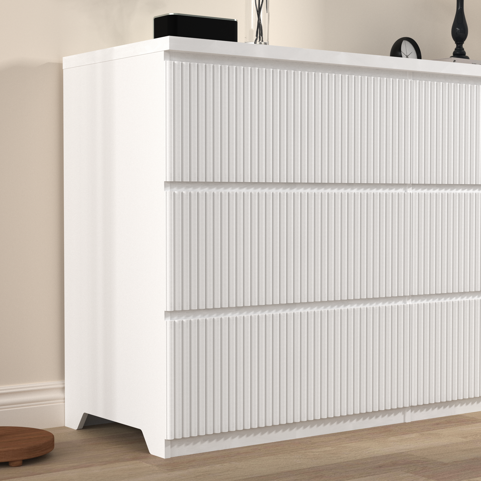White 6-Drawer Wood Dresser & Storage Cabinet for Bedroom