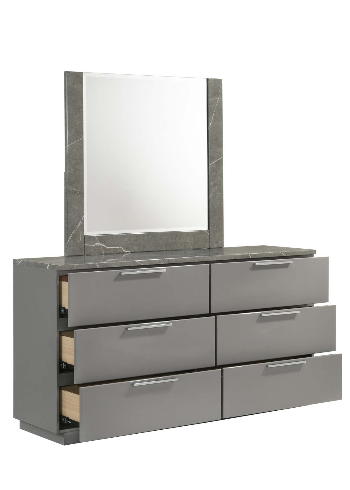 Elara Gray Dresser: Two-Tone High-Gloss Marble & Lacquer Drawers