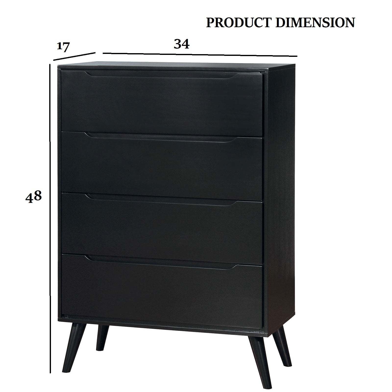 Black Mid-Century Modern 4-Drawer Chest with Tapered Legs