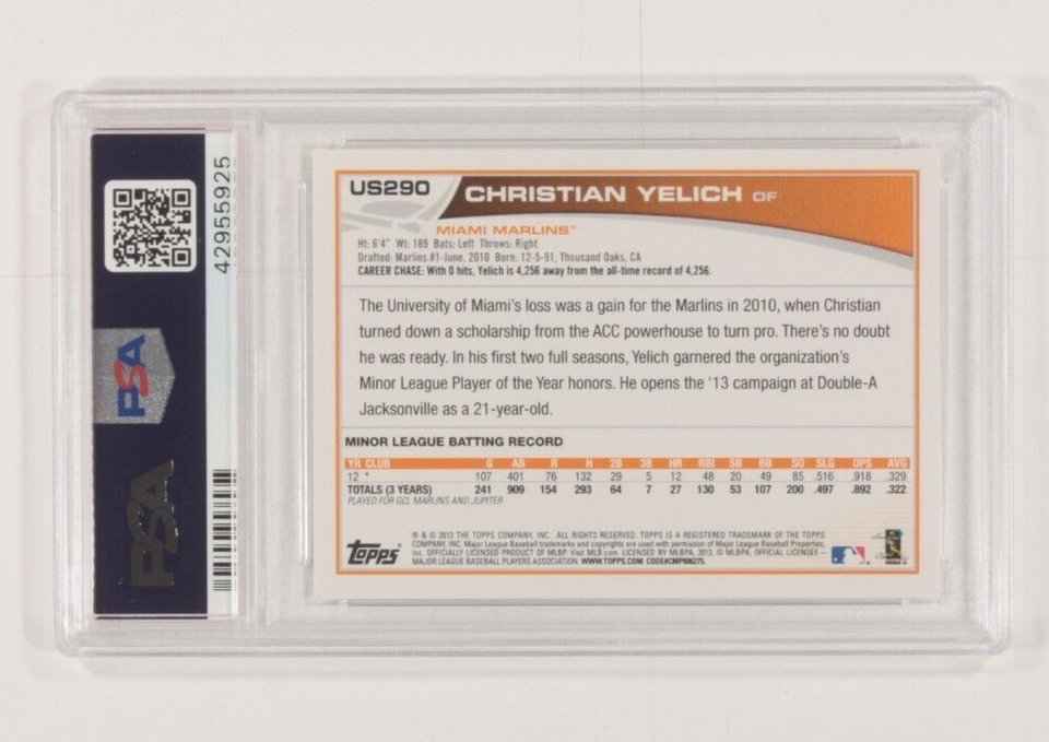 2013 Topps Update Christian Yelich PSA 10 Gem Unused Grade #US290- show origi...