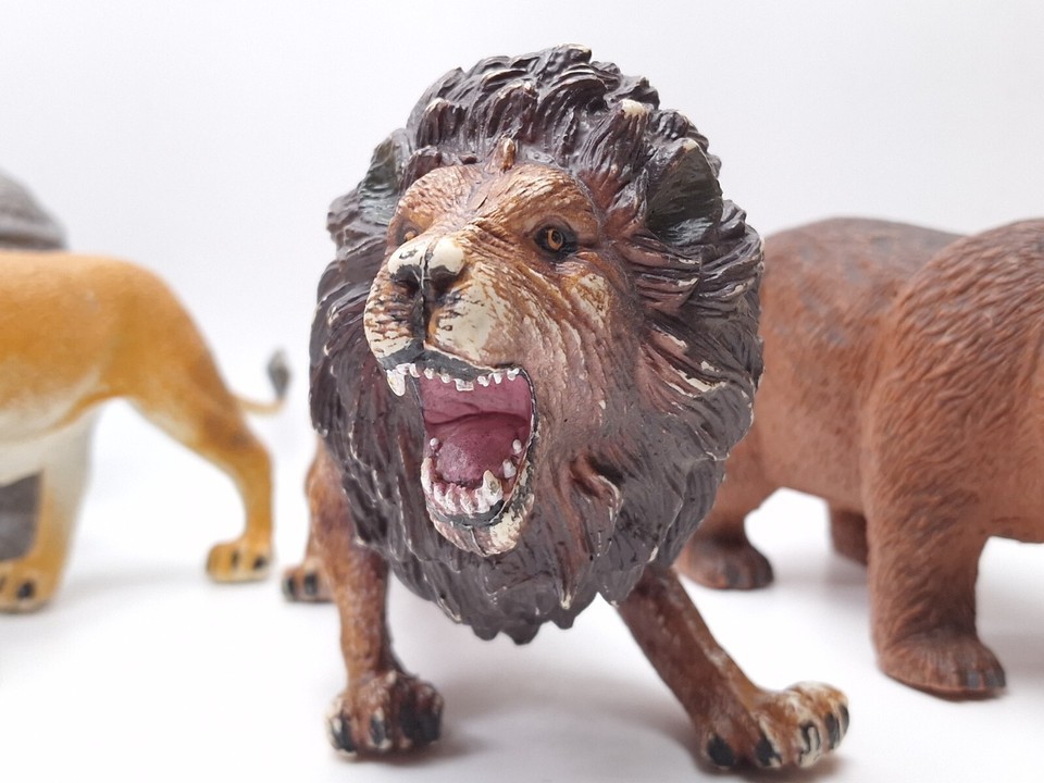 Vintage 1994 Rhinoceros + Lion + Bear Plastic Toy Figure Wildlife Animal Safari