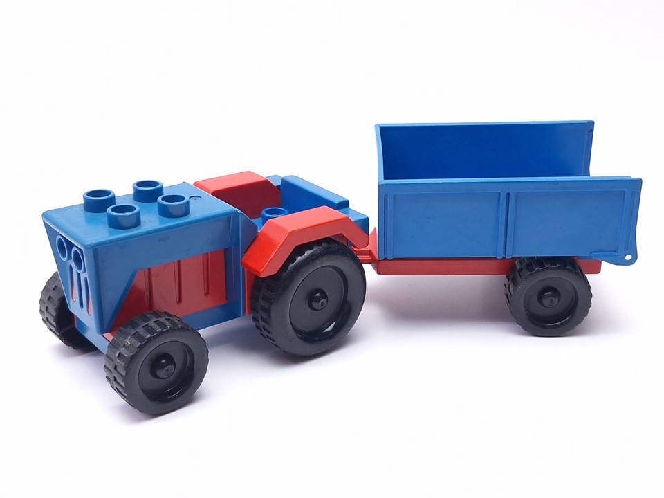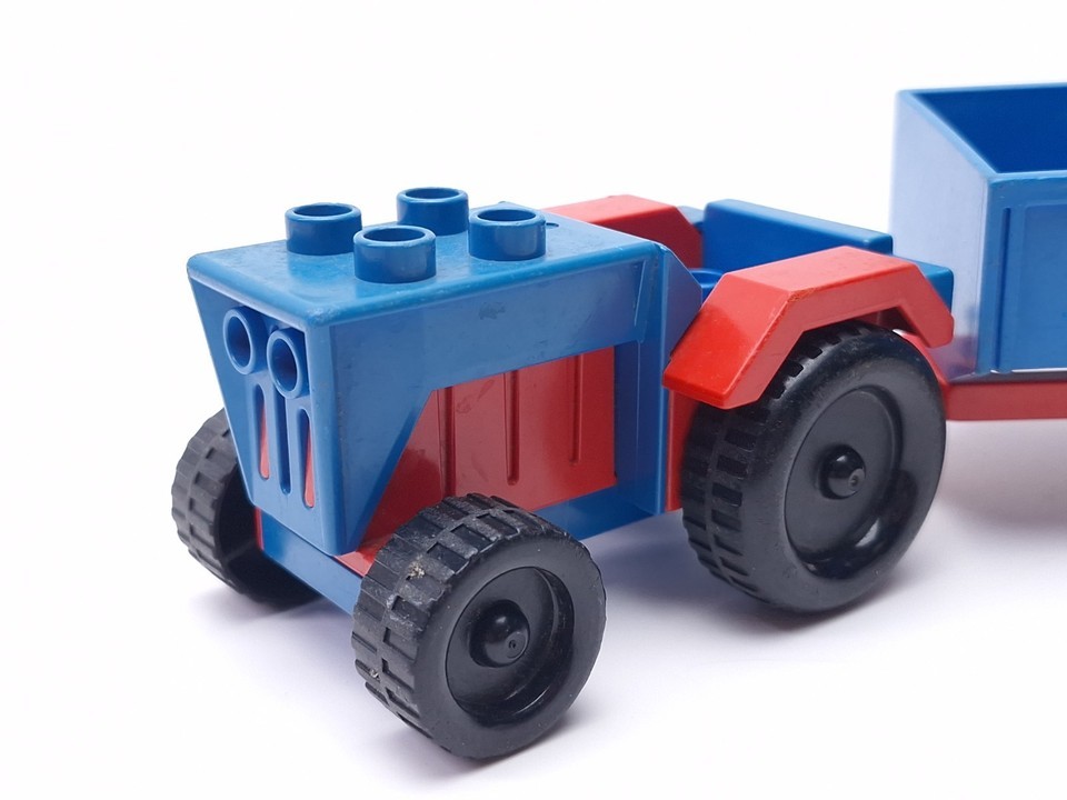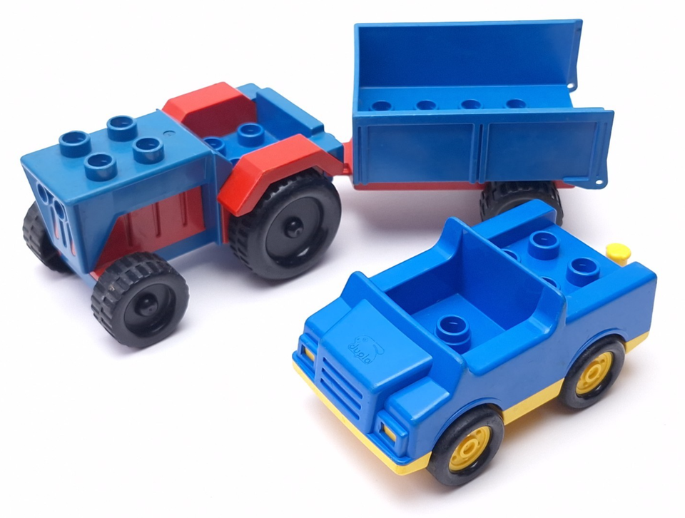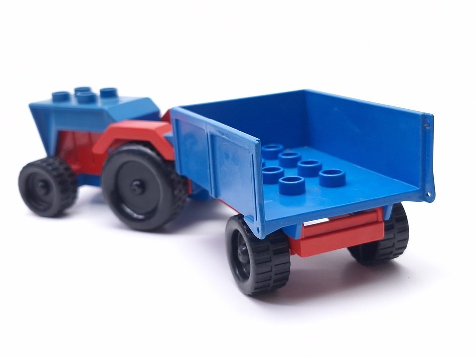 Lego Vintage Duplo Farm Tractor Red & Blue + Car