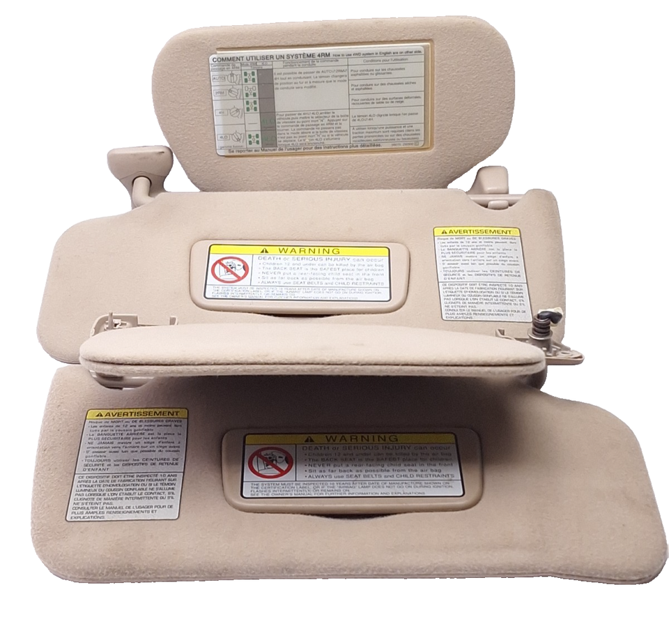 1997-2004 Nissan Pathfinder Infiniti QX4 Sun Visor Pari Set Tan Beige OEM Deluxe
