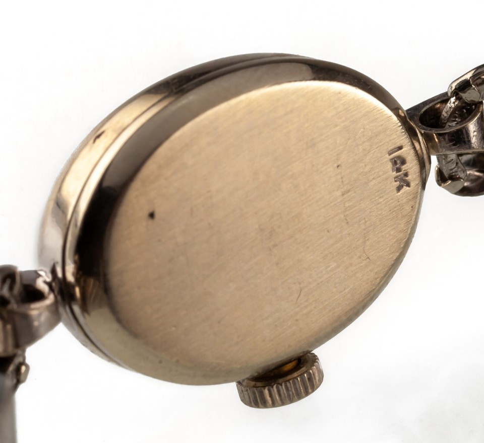 Donna Elgin 14k Oro Bianco Handwinding Orologio da Polso W/ Cavo Fascia