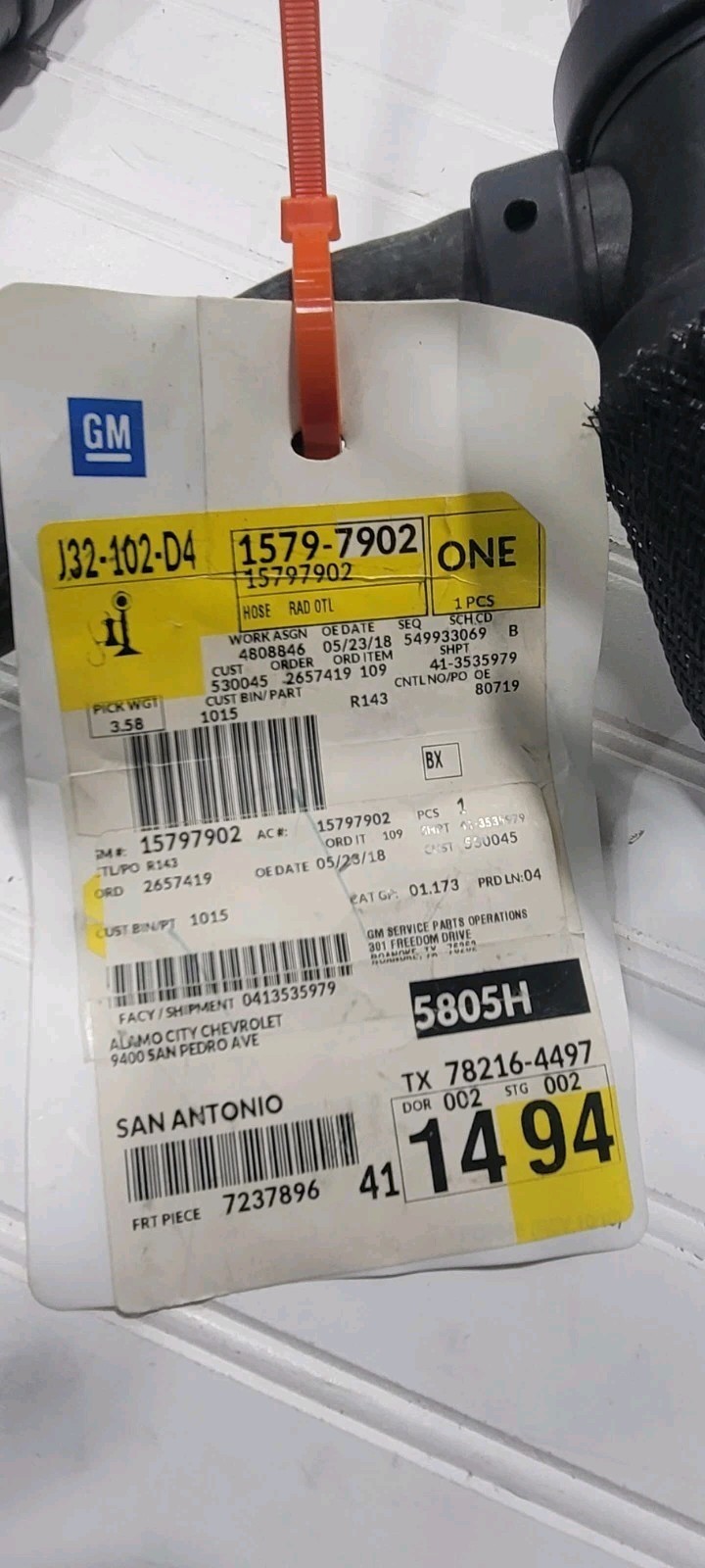 Genuine GM Lower Radiator Coolant Hose 15797902 Topkick Kodiac Chevy GMC