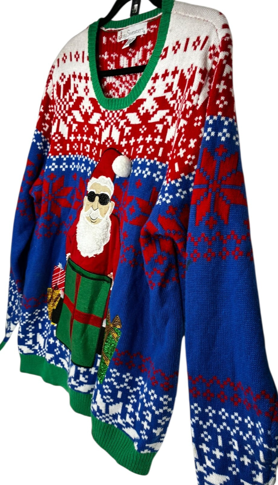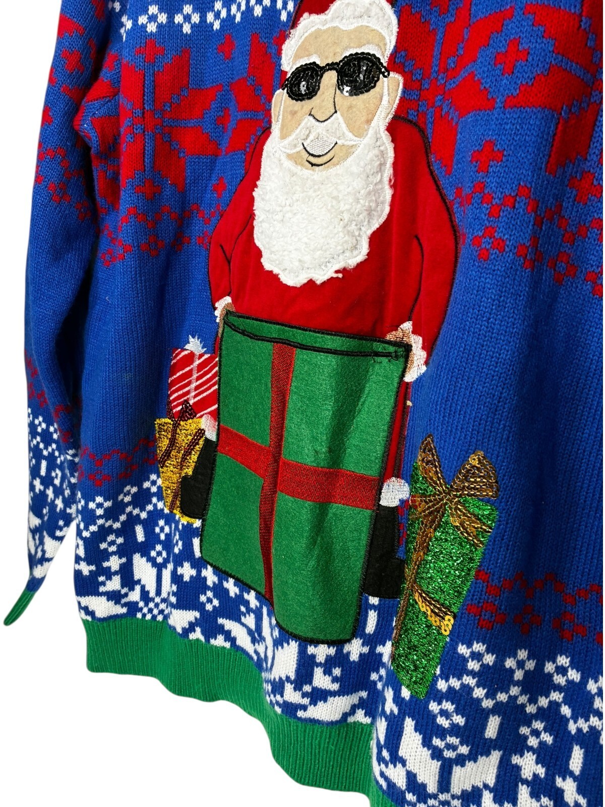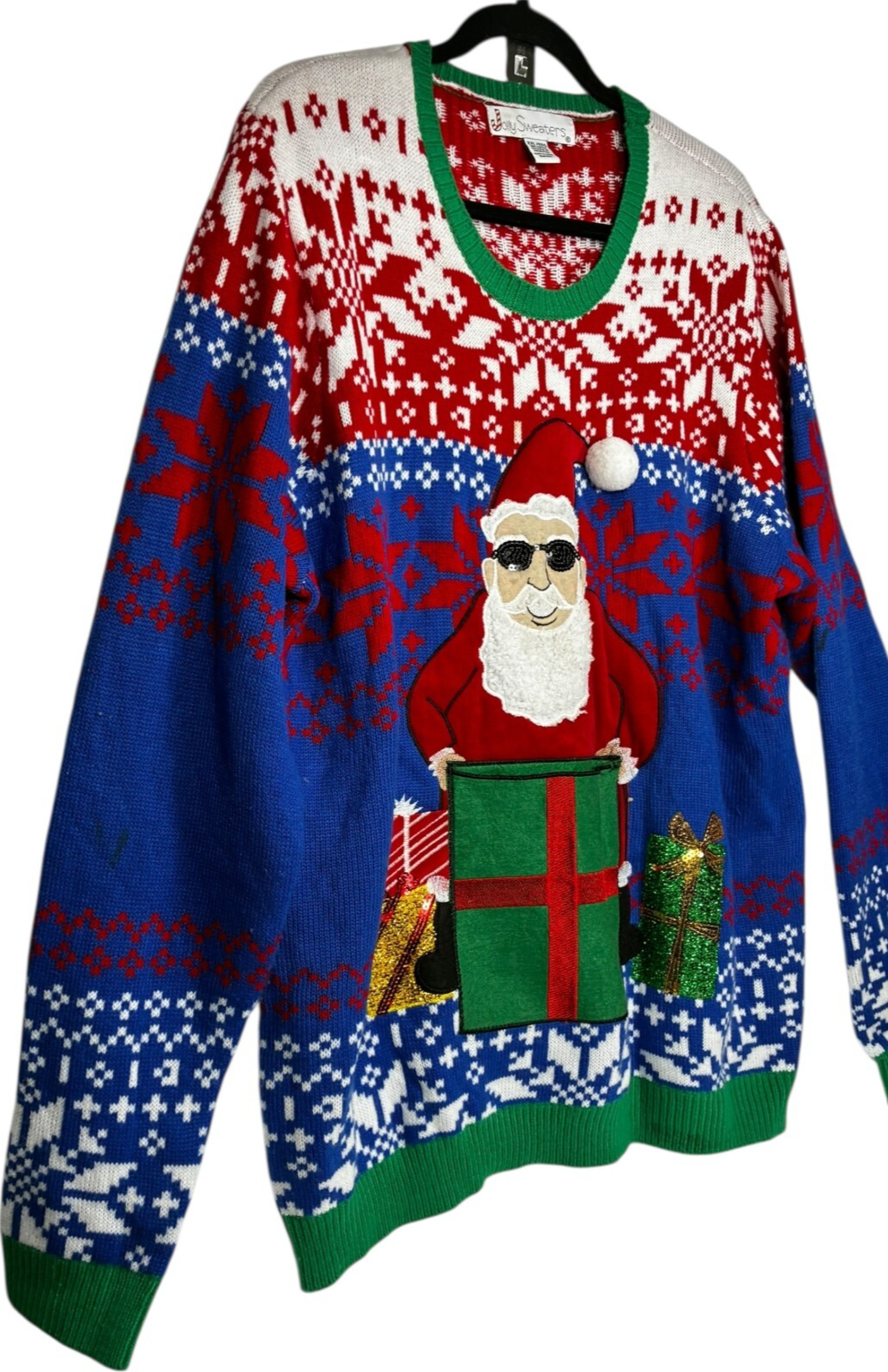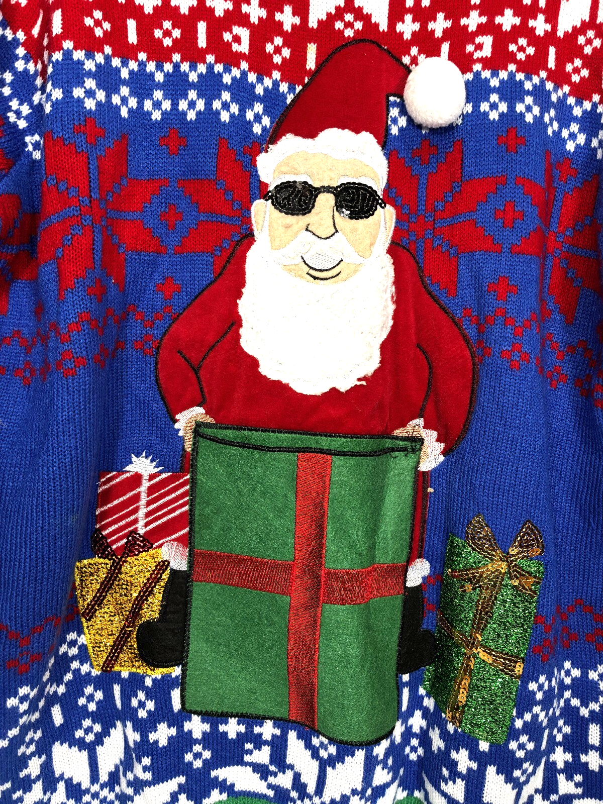 Jolly Sweater Cool Santa Claus Ugly Christmas Sweater Gift Box w/Drink Pouch Sequins Unisex XXL 2XL
