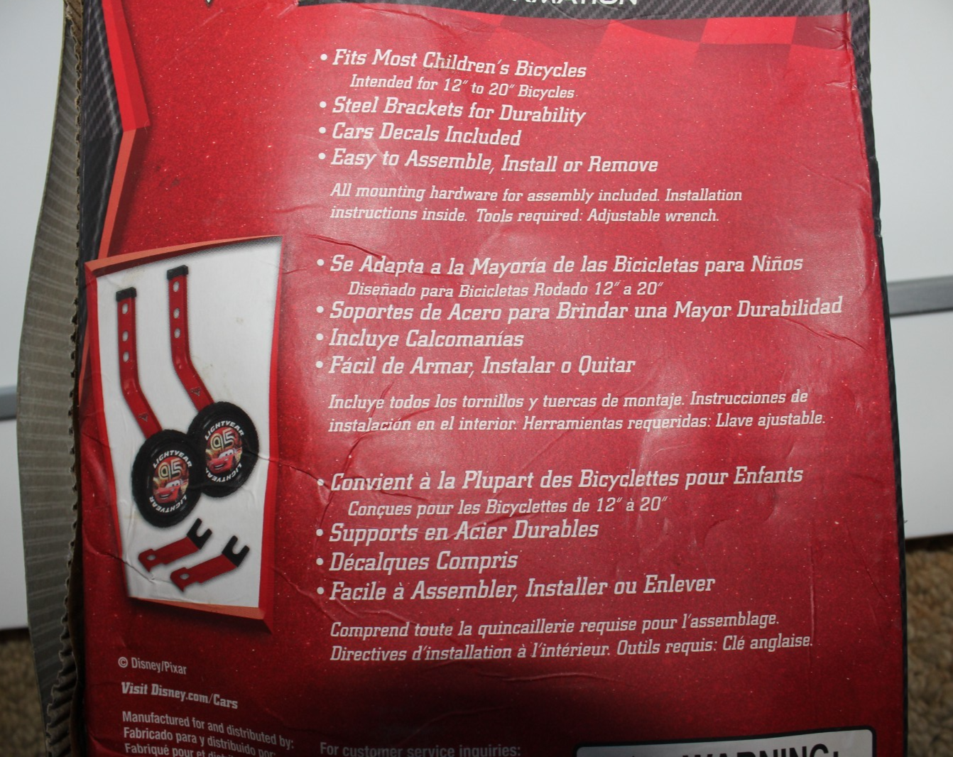 Disney Pixar Cars 2 Kids Bicycle Training Wheels Stabilizer Kit for 12"-20" Bike