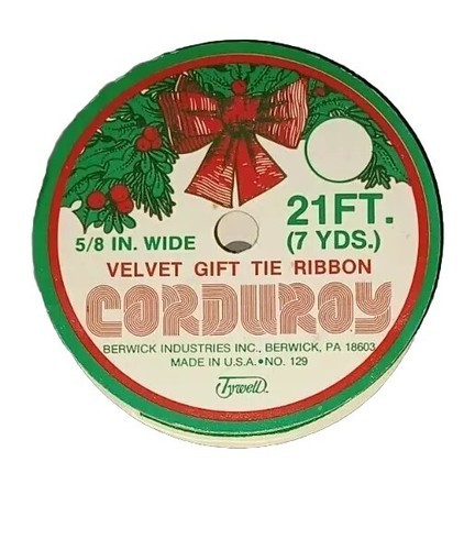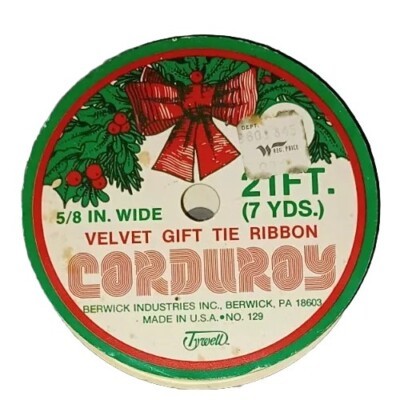 Vintage Corduroy By Tywell Velvet Gift Tie Ribbon 21 Ft 5/8 Inches Wide NOS 70s