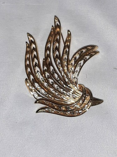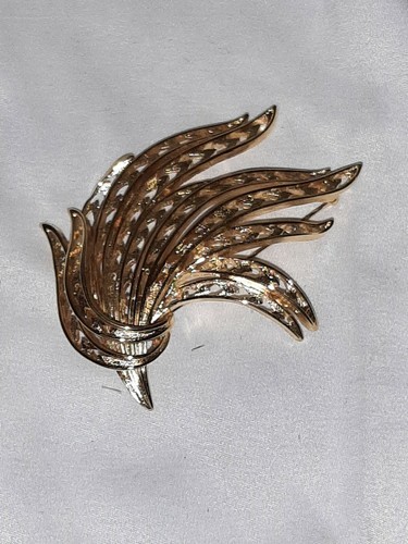 MONET GOLD TONE LEAVES/WHEAT BUNDLE DESIGN BROOCH PIN OPEN WORK VINTAGE JEWELRY