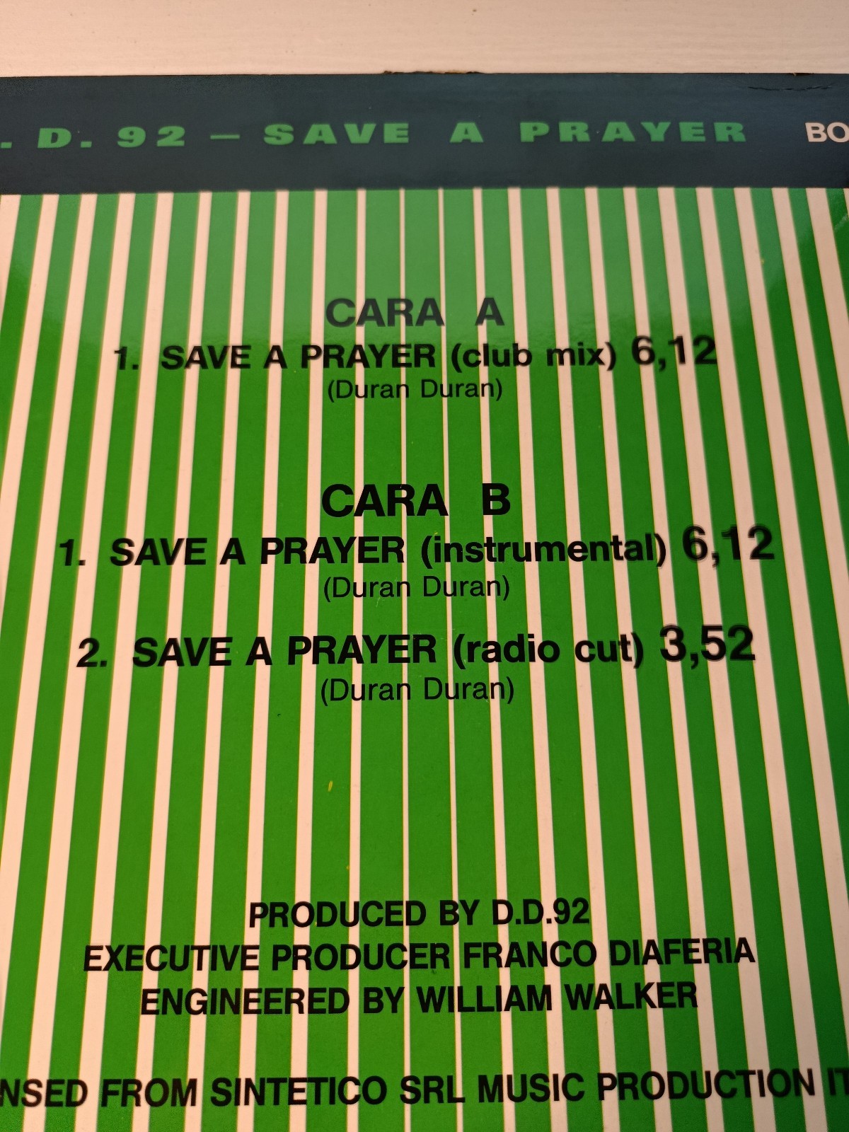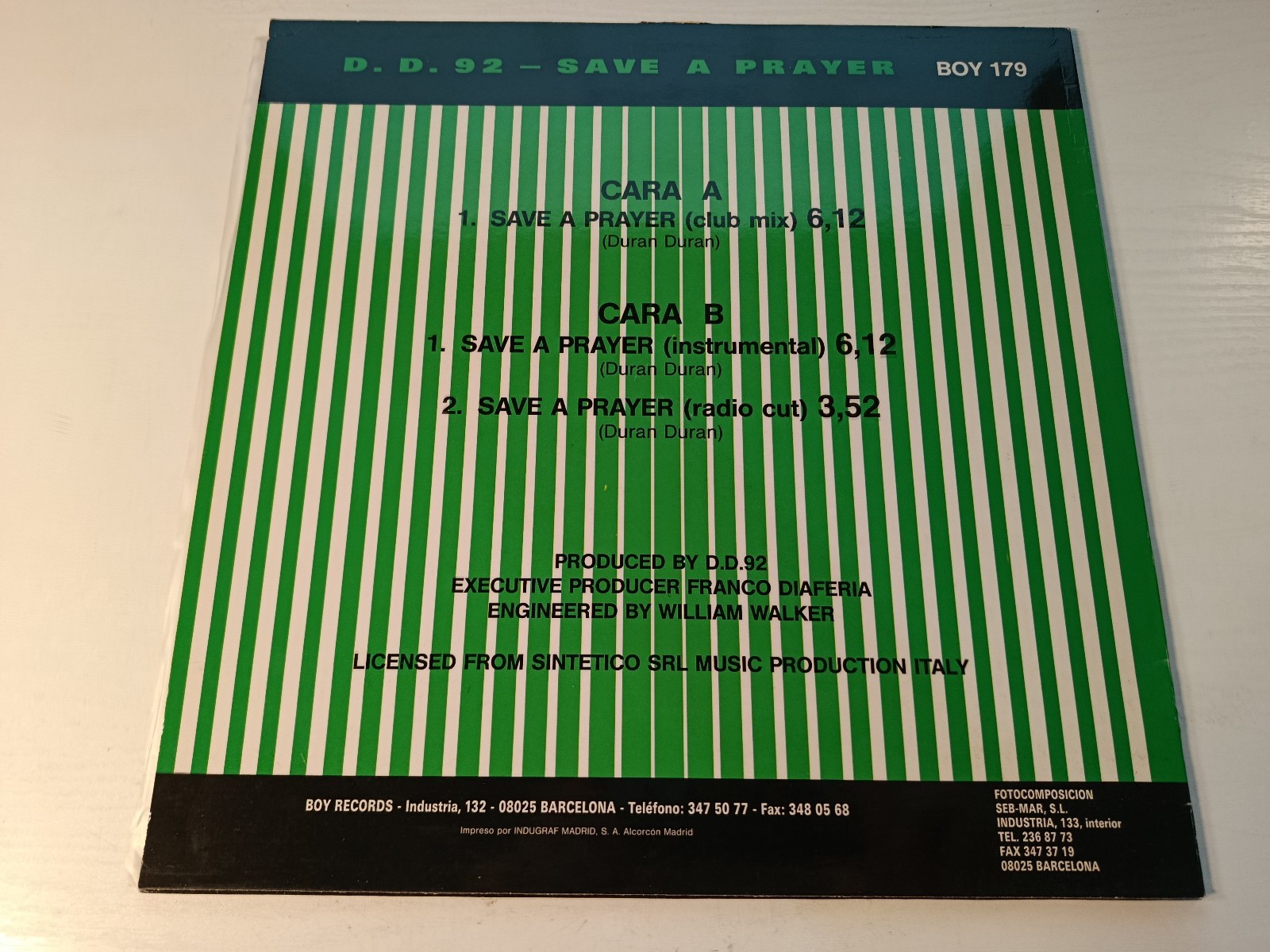 1993 dance version de del classic Save A Prayer de Duran Duran, reinterpreted by el project DD 92 bajo el Barcelona stamp Boy Records, uno delos referentsde the eurodance scene and spanish machinedelos 90s. Produced in Italy by SINTETICO SRL, con exclusive license para Spain.
