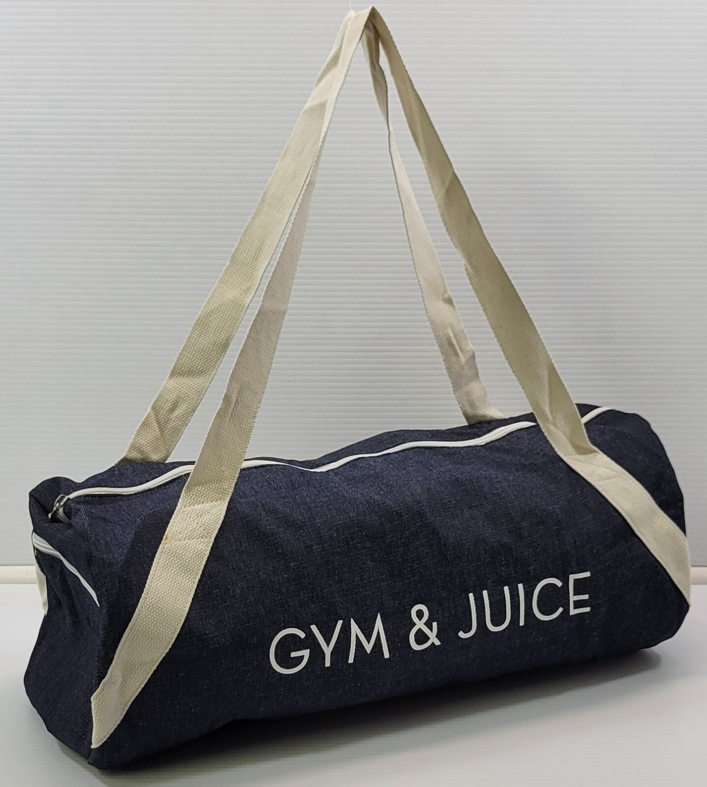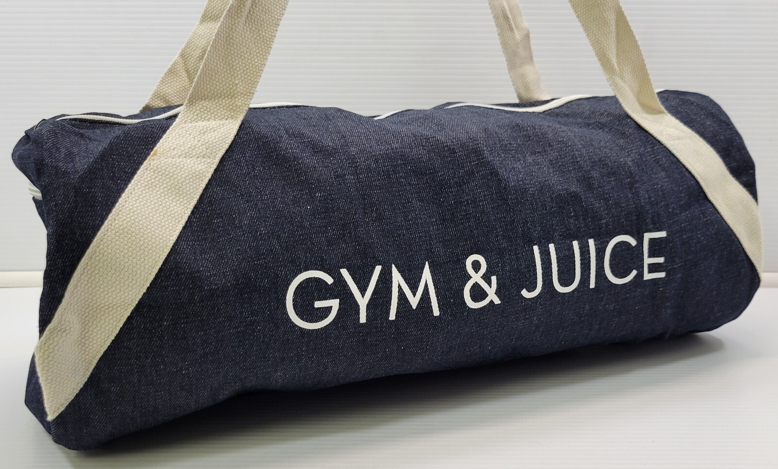 K) Gym & Juice Athletic Blue Denim Shoulder Duffle Bag 19"