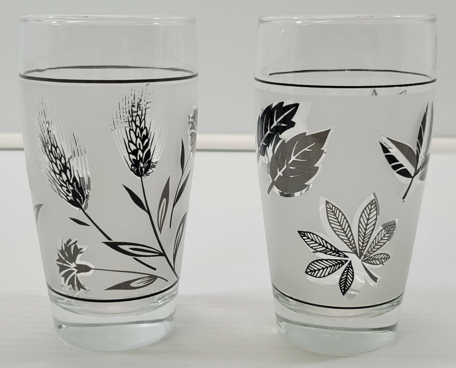 Libbey Glass Company Silver Foliage Leaves and Wheat Tumblers