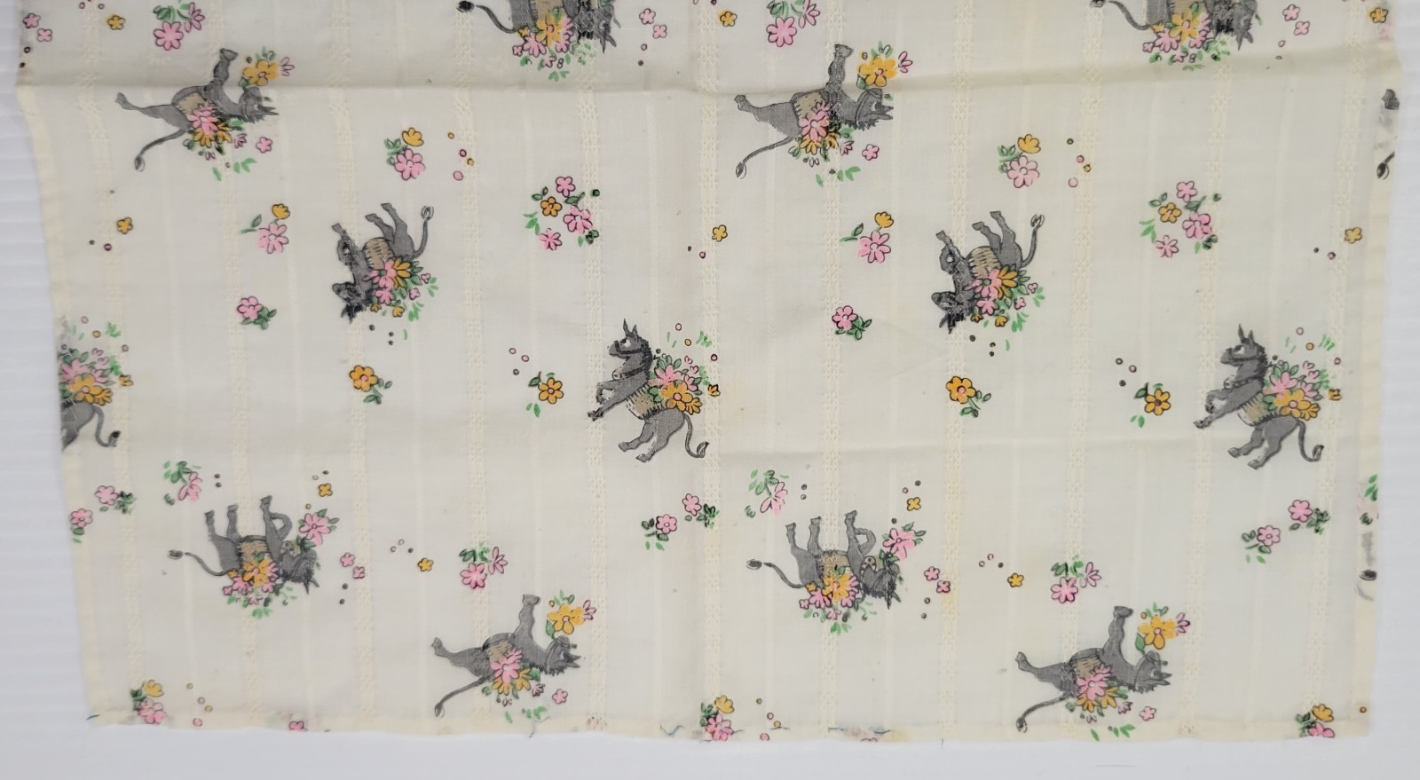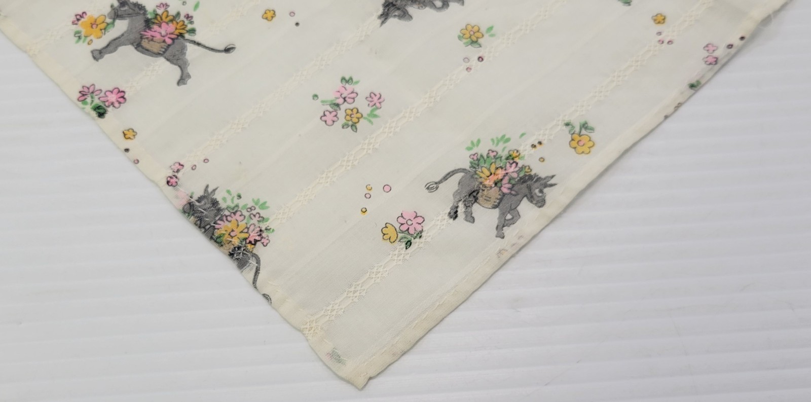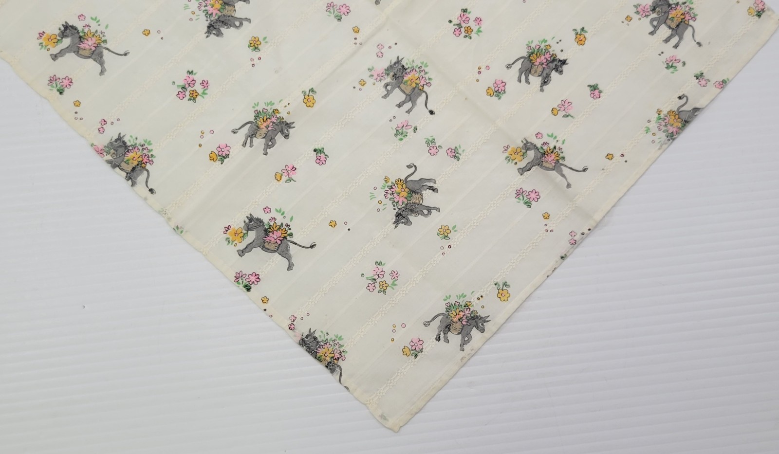 G) Vintage Italian Floral Donkey Print Pocket Square Cloth Handkerchief 14 x 14