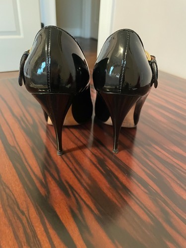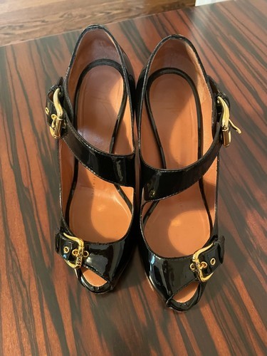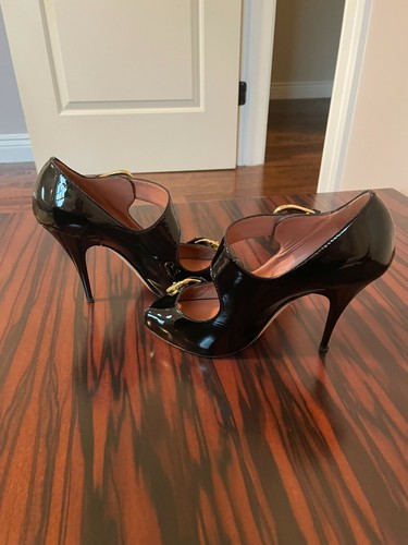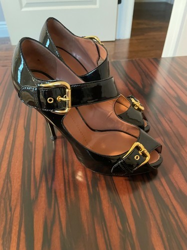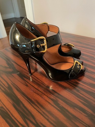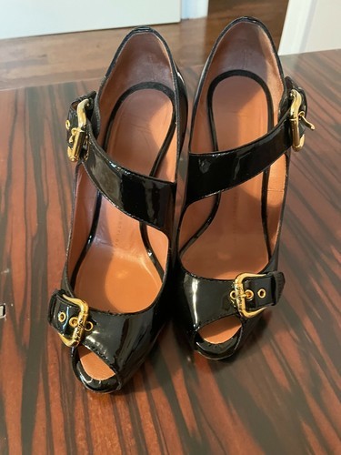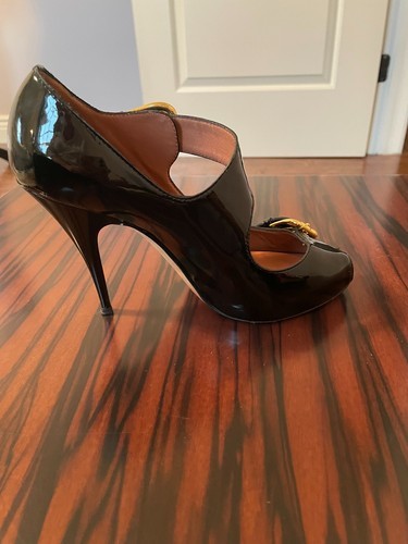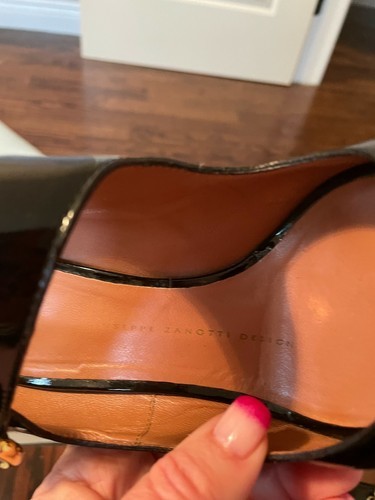 GIUSEPPE ZANOTTI Peep Toe Black Stiletto Heel Patent Leather Shoes SZ 6.5