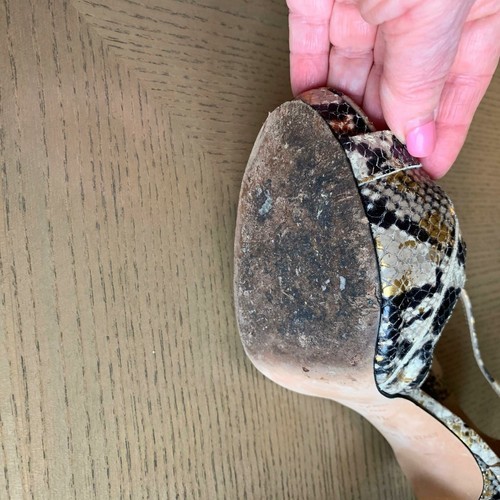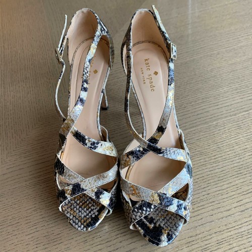 EUC KATE SPADE New York Black, Gray, Gold embossed leather snakeskin High Heel Sandals SZ 7.5