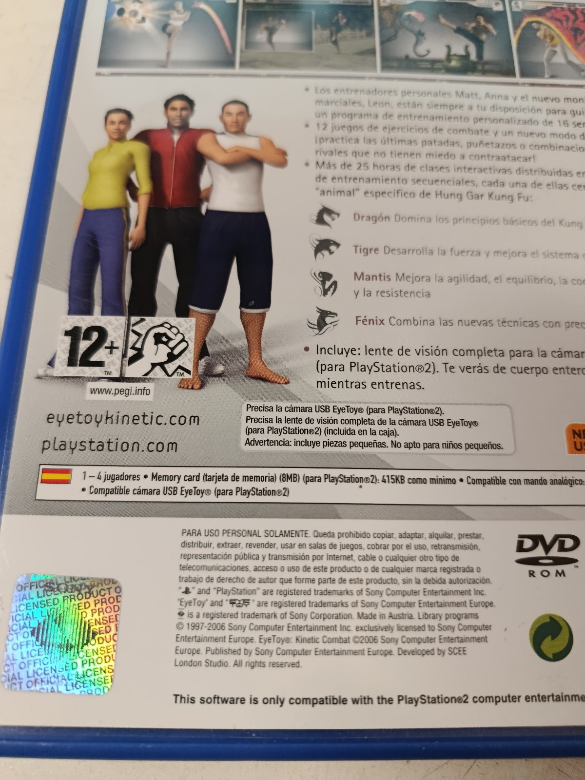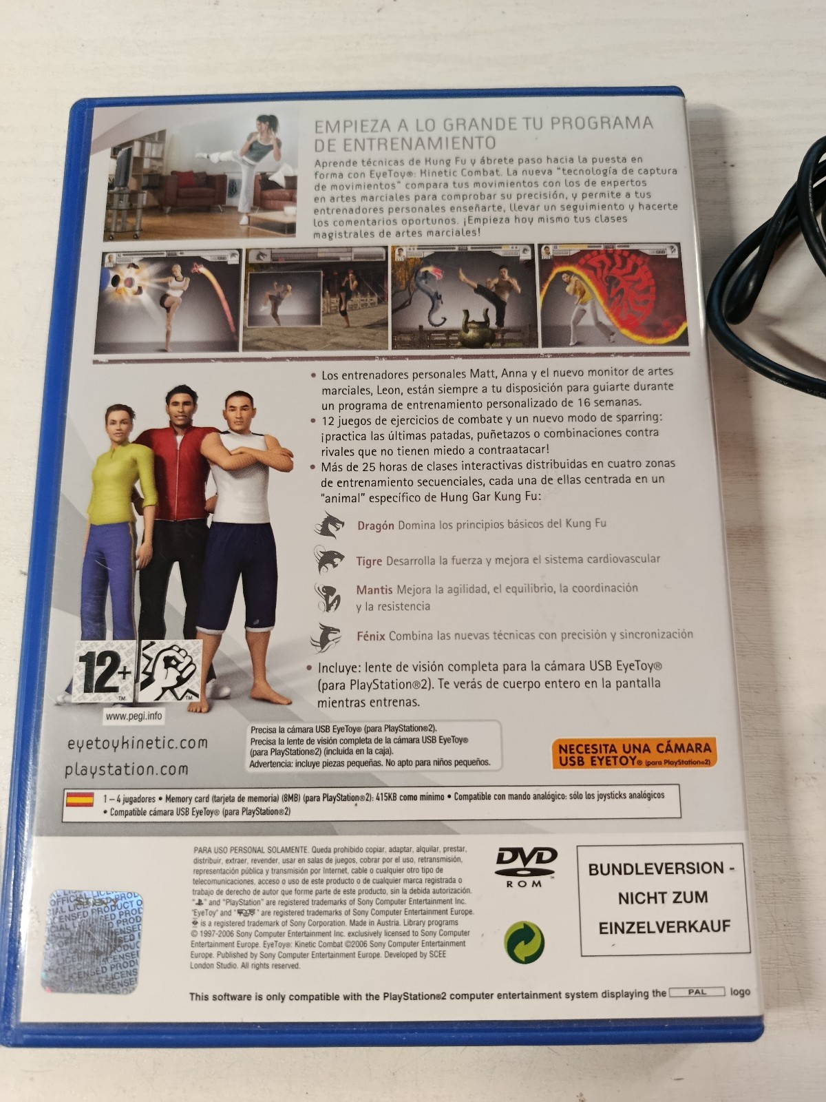 Train Like Never Before with Eyetoy Kinetic Combat For PlayStation 2! Inspired by Martial Arts and Using the Eyotoy Camera, This Game Lets You Practice Kung Fu Techniques, Improve Endurance, Strength, and Agility While Following A Custom Training Program. Includes The Original Eyotoy Camera Required To Play. A unique opportunity para de 2 collectors and loversdelosjuegosde Interactive training. This pack includes everything you need para enjoy de complete exper