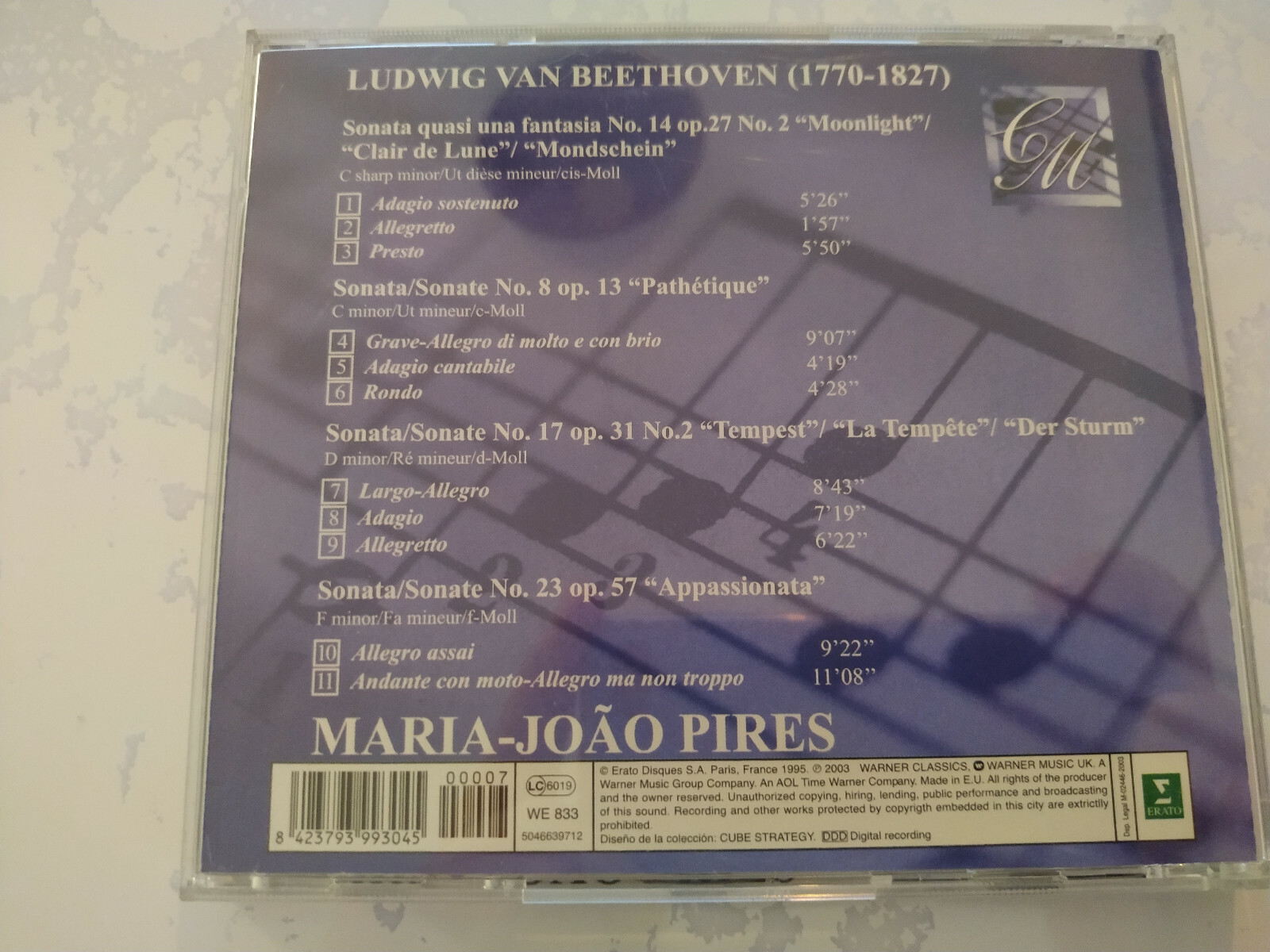 MARIA Joao Pires Beethoven Sonatas para Piano Claro de Luna Warner 2003 - CD