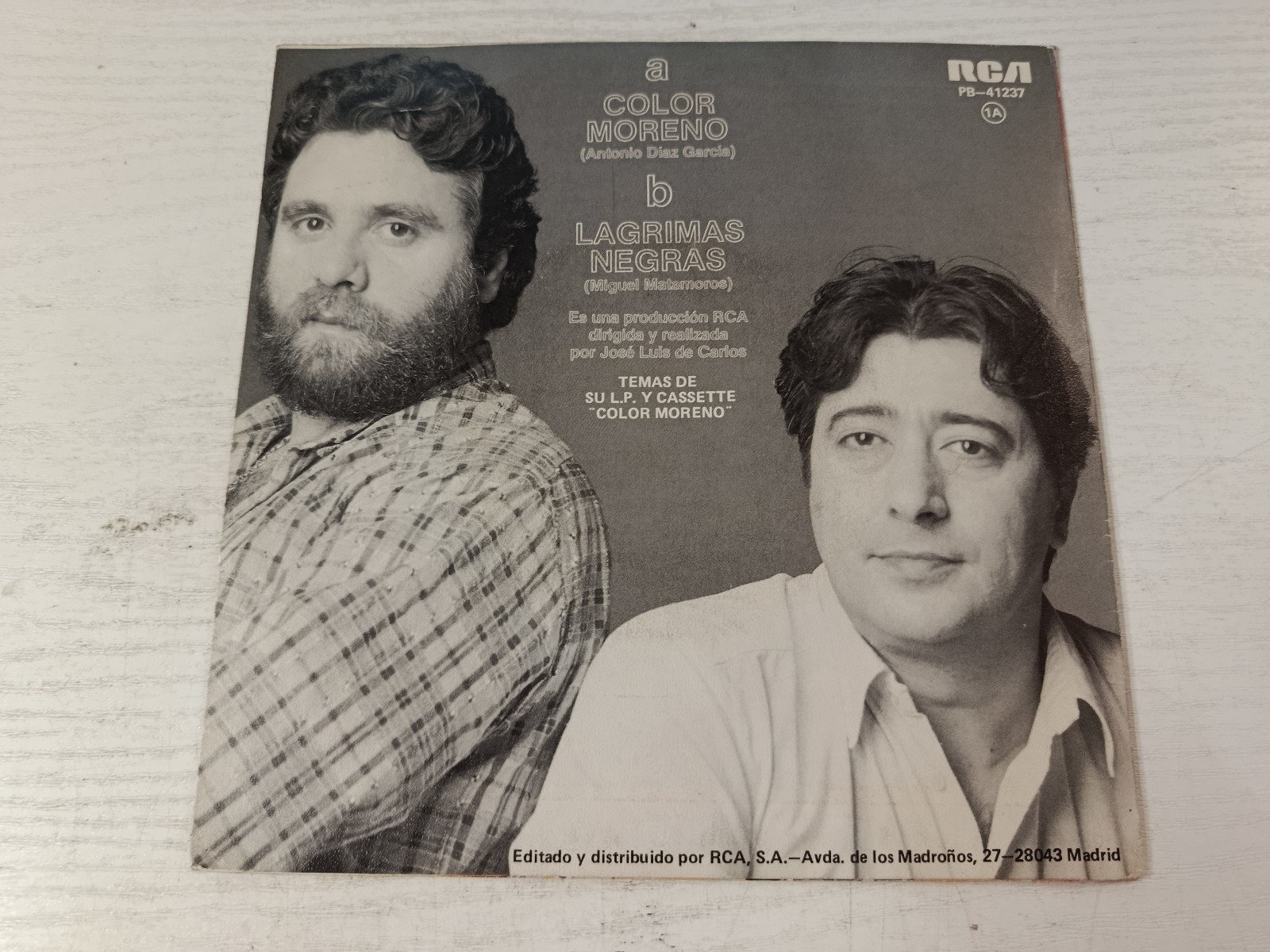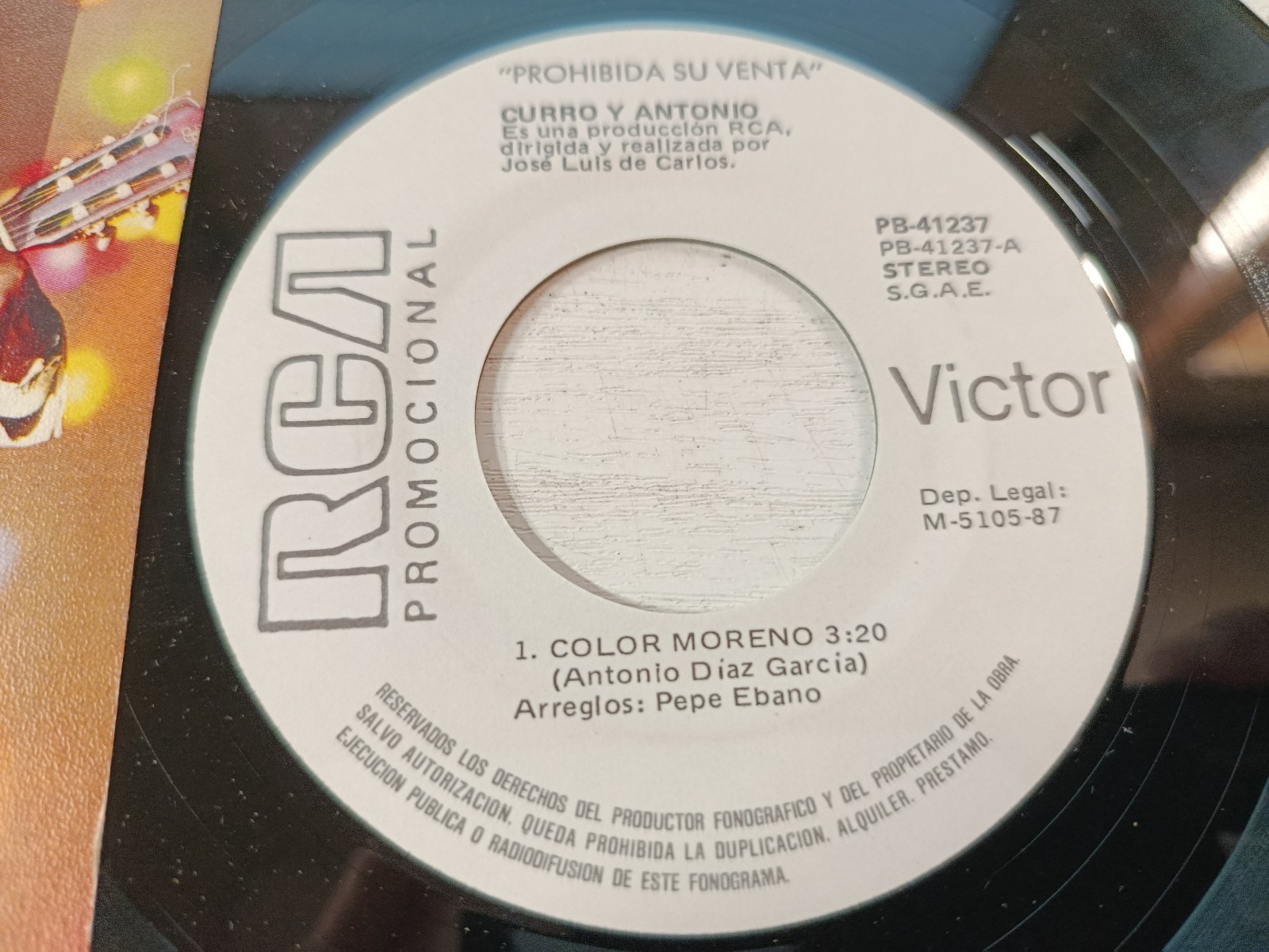 Promotional edition del ?Moreno color ? theme, played by Curro andANTONIO , launched in 1987. This jewel del Spanish flamenco stands out by its vocal force and by simple but very representative productiondel Andalusian traditional style,con Contemporary influences. no -venal, uncommon promotional piece.