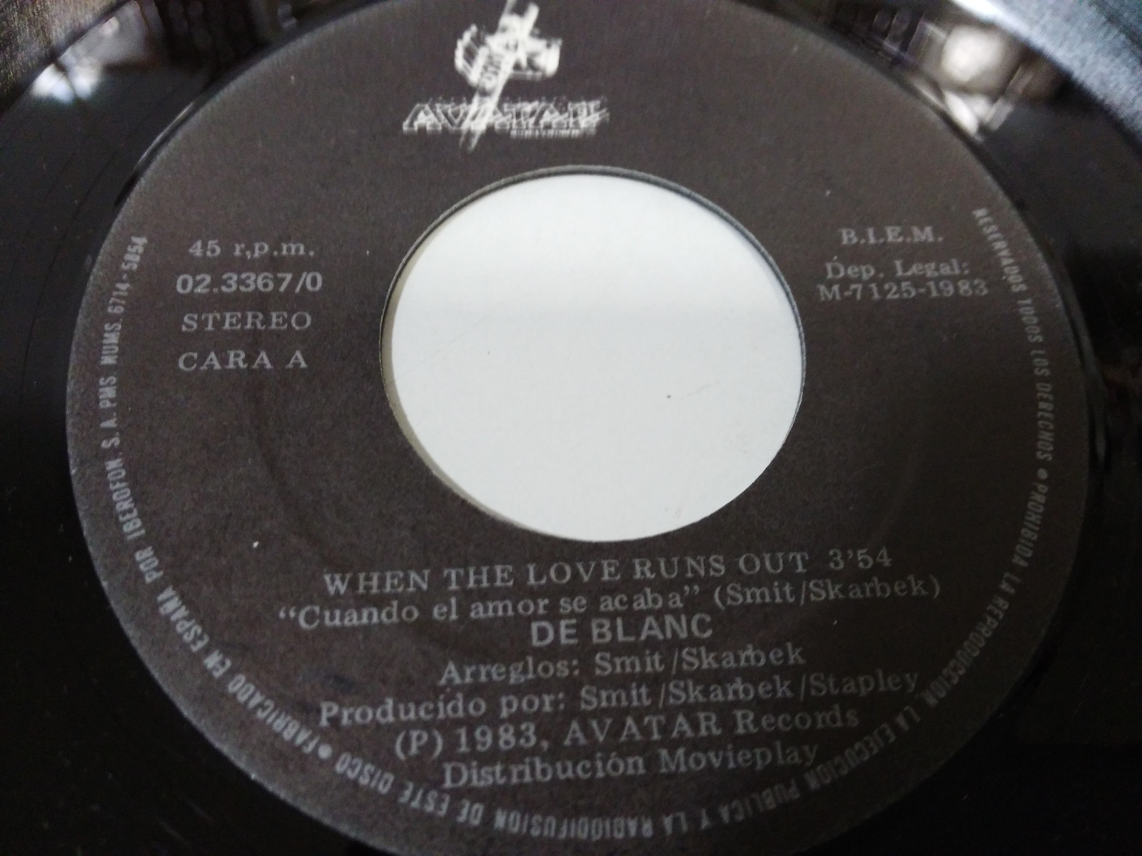 De Blanc When The Love Runs Out 1983 Avatar Single 7" Vinyl Spanish Edit Rare