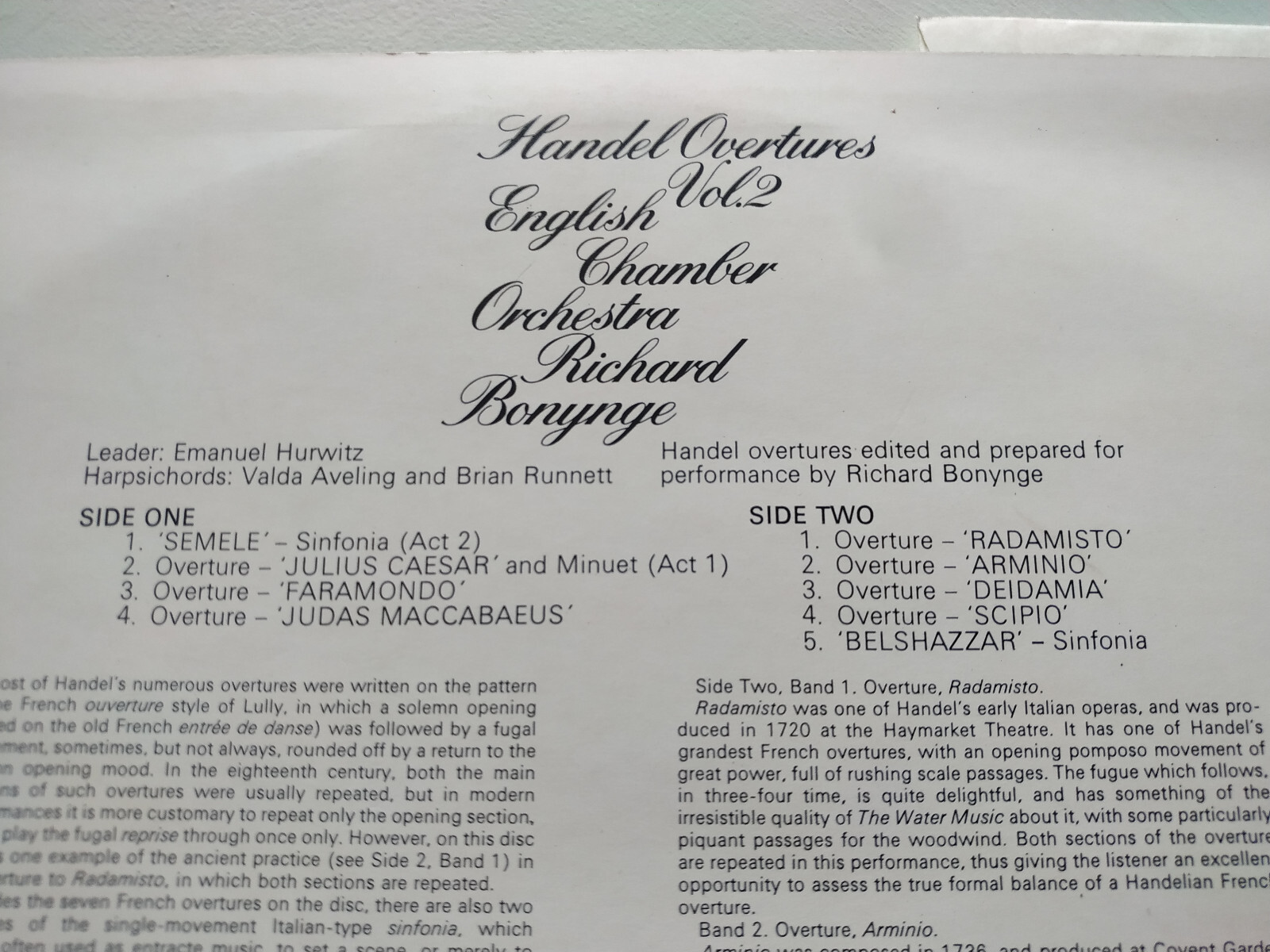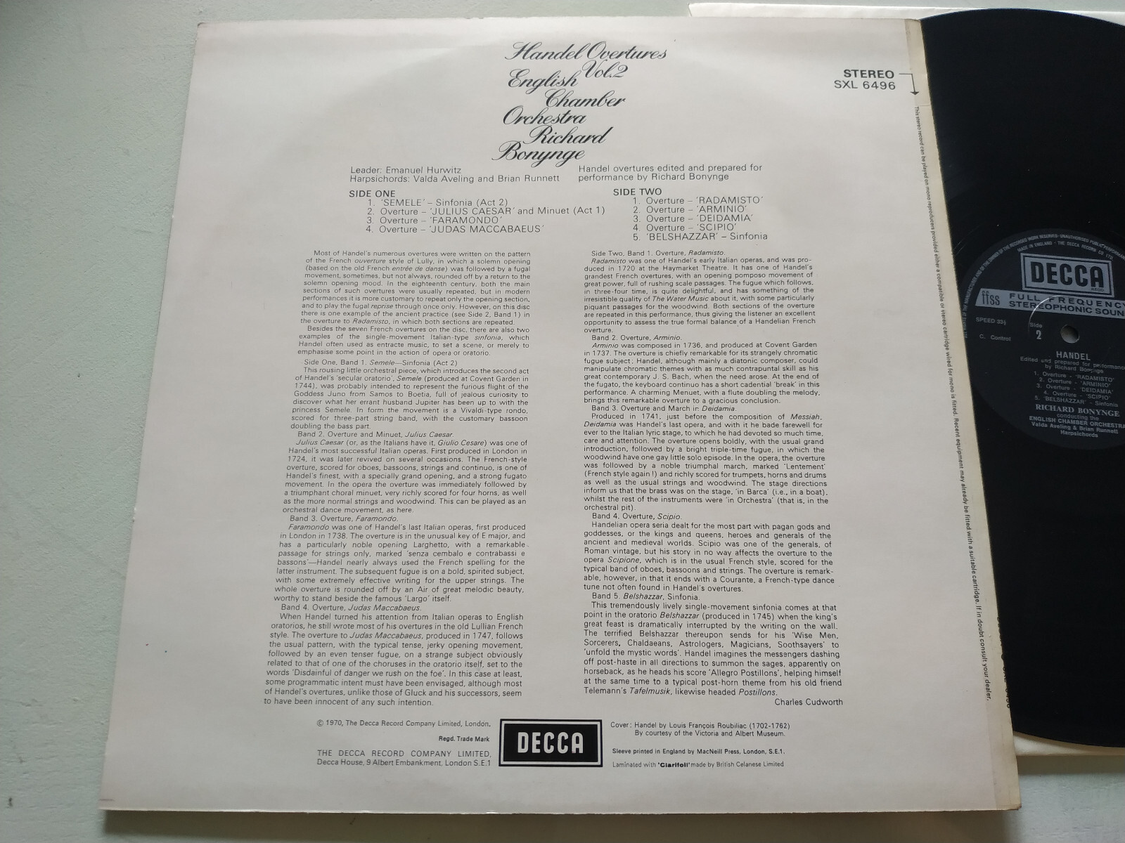 Handel Overtures Vol 2 English Chamber Orchestra Bonynge LP 12 " vinyl VG/VG