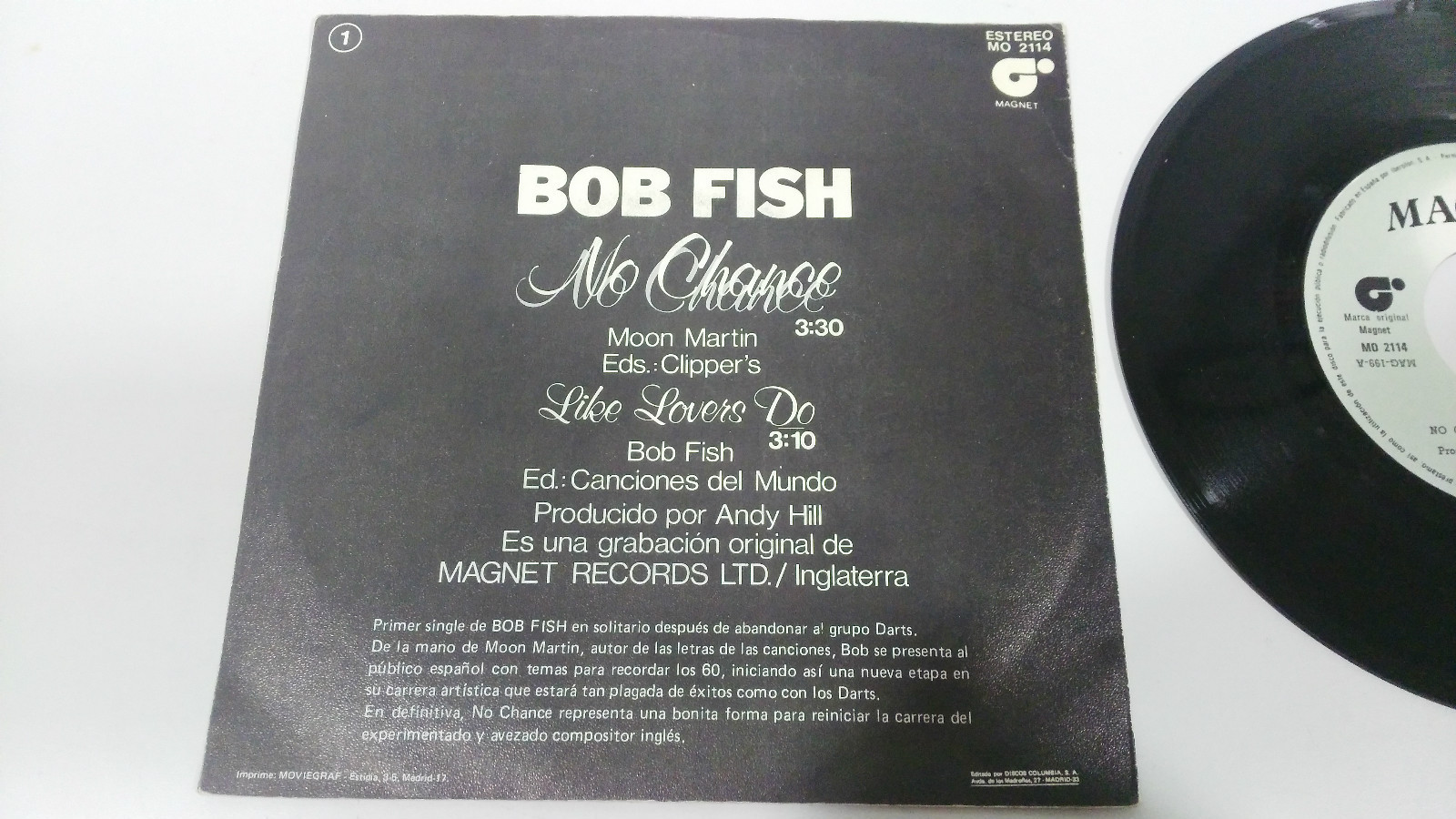 Bob Fish no Chance 1981 Magnet Single 7 "Vinyl Spanish Edition Rare !!!