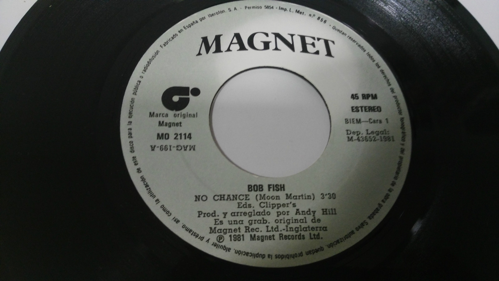 Bob Fish no Chance 1981 Magnet Single 7 " Vinyl Spanish Edit Rare