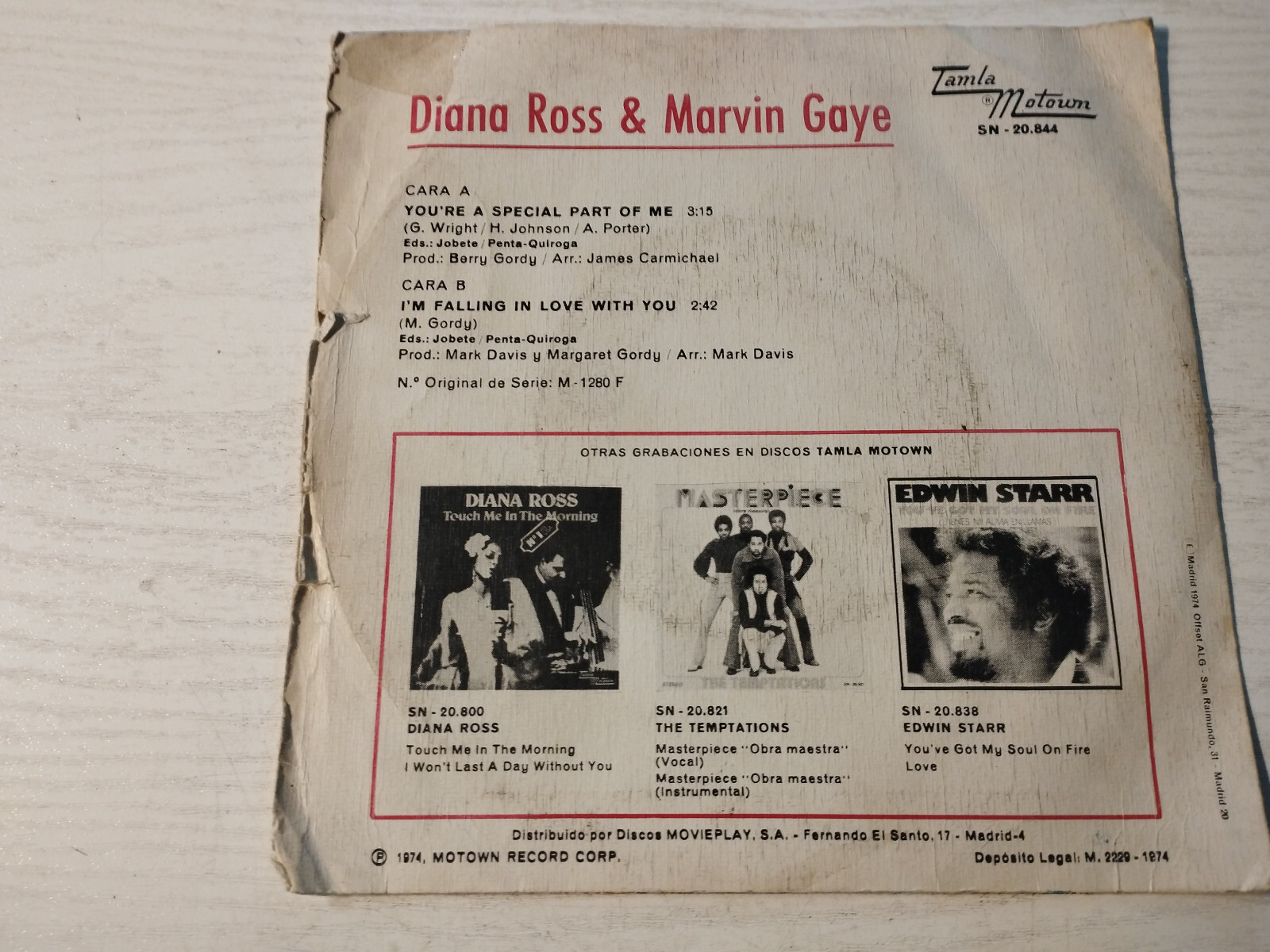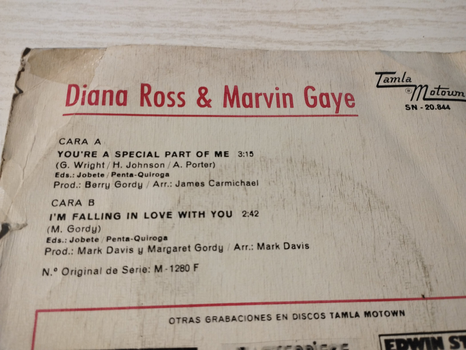 Diana Ross Marvin Gaye Youre A Special Part of Me - Single Lp vinyl 7 "G+/G+