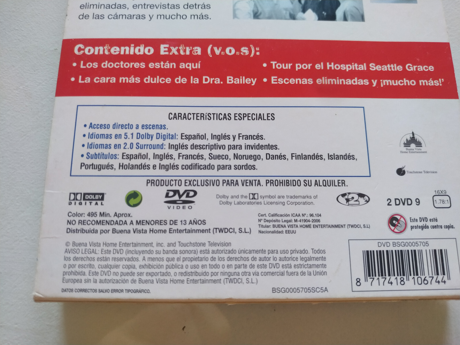 Anatomia Di Grey Prima Stagione 1 Completa - 2 X DVD Spagnolo Inglese - 3T